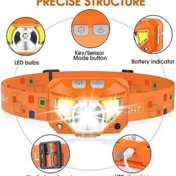 › See more product details - LHKNL Headlamp Rechargeable,1200 Lumen Super Bright Motion Sensor Head Lamp Flashlight, Waterproof LED Headlight with White Red Light, 8 Mode Head Lights for Camping Cycling Running Fishing-4 Packs Sports & OutdoorsRated 4.46 out of 5$85.00