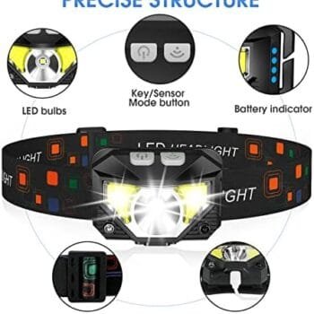 About this item Long Press and Rechargeable Design: Unlike the older, LHKNL headlamp add a long press function. In any mode, if you hold the key mode button for 3 seconds, you can turn off the light directly, without cycling through all modes. And it has a 1500mAh built-in rechargeable battery that allows you to charge and turn on the light at the same time. No need to wait for full charge or replace battery.The battery indicator will help you master battery usage. Last for 4-10 hours after full charge Super Bright and Motion Sensor: The headlamp flashlight uses class-leading LED chips that has the maximum brightness of 1100 lumens, easily light up an entire tent and road, even the mountain. It added motion sensor mode, you can easily turn the lights ON or OFF by waving your hand, which is more convenient and avoids soiling the headlamp when your hands are dirty Ultra-light and Adjustable: The hand-free headlamp is only weight 1.76 OZ, comfortable and lightweight. The lamp head can be rotated 60° and tightly fixed to avoid shaking and sliding when running. The head flashlight uses comfortable elastic headband, which can easily adjust the length to perfectly fit your head size, perfect for adults and kids Waterproof and 8 Modes: The headlight has IPX4 waterproof rate. The high-quality shell is more sealed and leak-proof, which is suitable for rain or snow, indoors or outdoors. The led headlamp has 8 lighting modes to meet your various needs. In key light mode, you can switch the main strong beam, main weak beam, side strong beam, side weak beam, red beam, SOS red strobe. In motion sensor mode, you can switch the main strong beam and side strong beam Friendly Service and Risk-free purchase: The design of this headlamp has been applied for a USPTO patent in the United States. It will be a one-of-a-kind purchase! If you have any questions, please reach out to us, we will offer you with professional services and satisfactory solutions. Add to your cart now