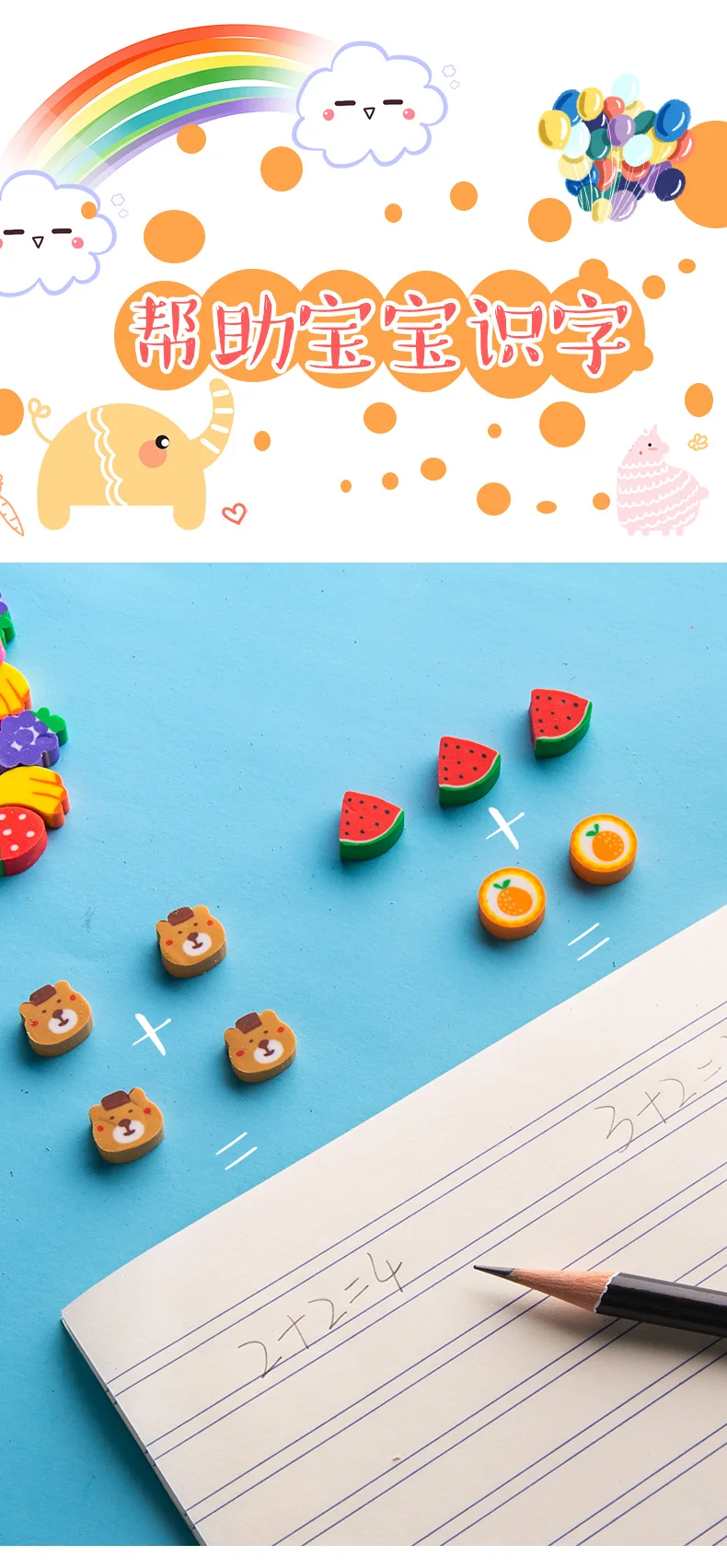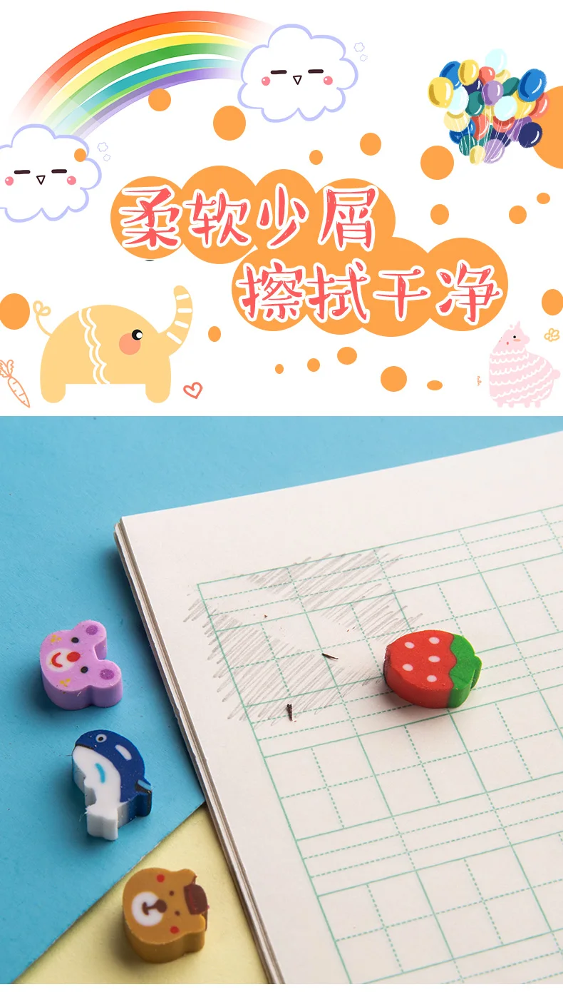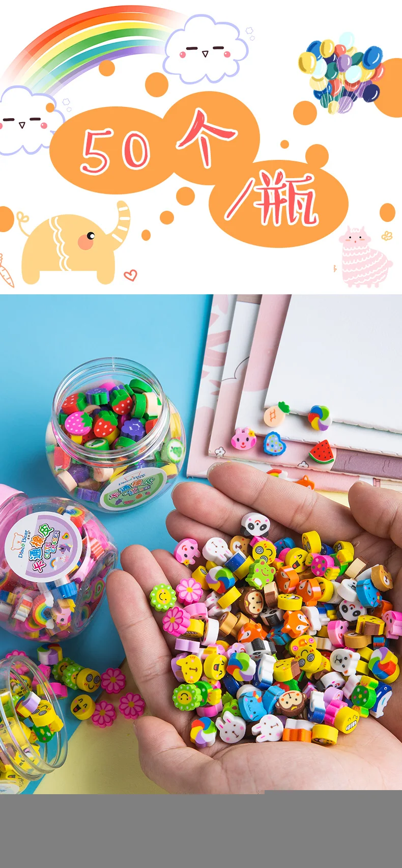 الإبداعية الحيوان الفاكهة قلم رصاص محايات ، لطيف المطاط ممحاة ، مصغرة Kawaii القرطاسية للأطفال ، طالب اللوازم المكتبية ، 50 قطعة لكل مجموعة