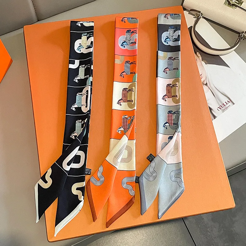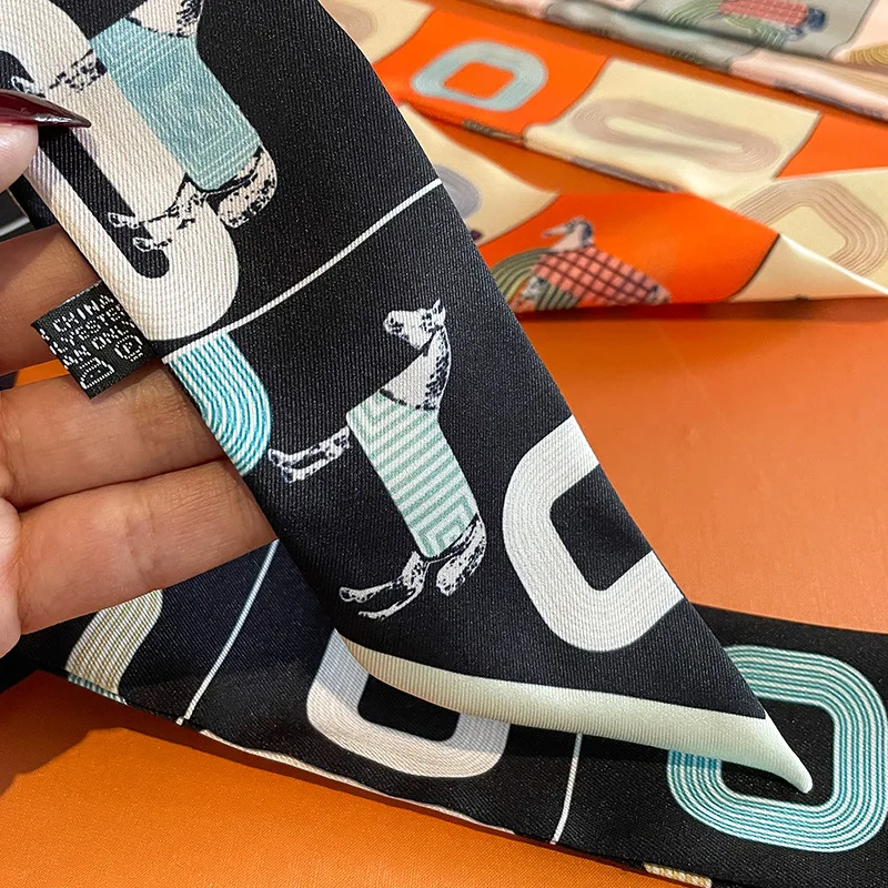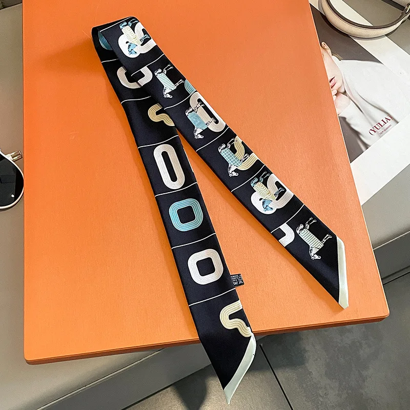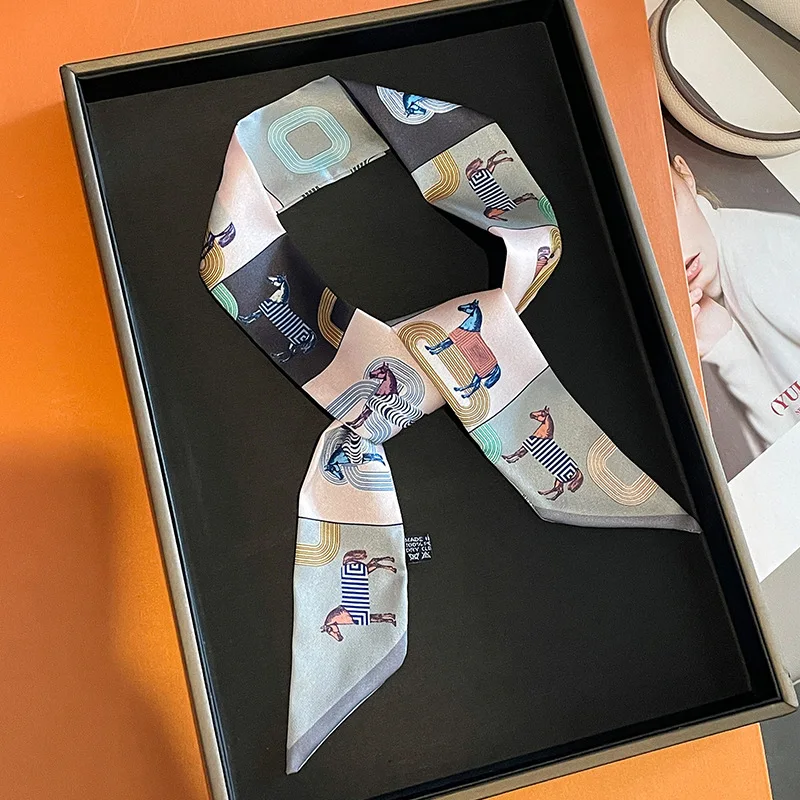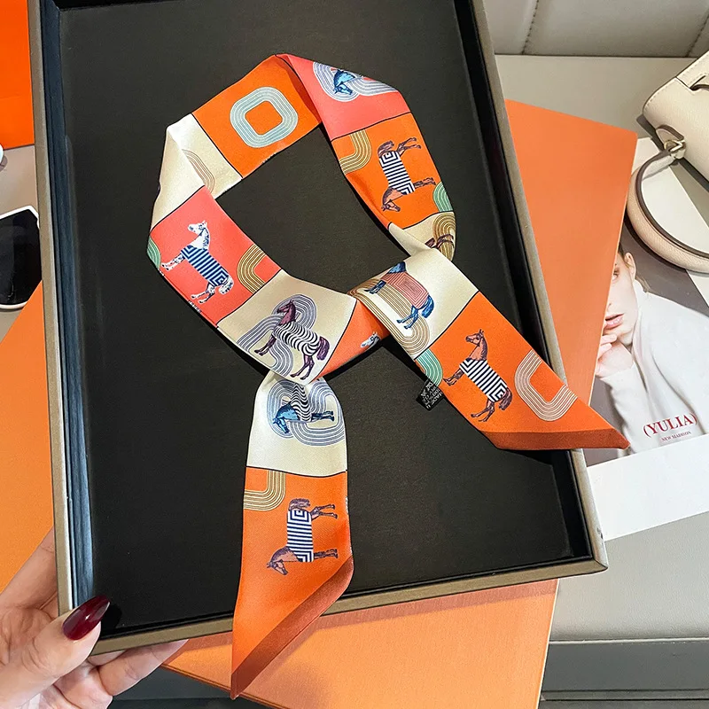 ريترو هورس طباعة نحيل الحرير الشريط وشاح للنساء ، فولارد منديل ، هيرباند ، الأوشحة الرقبة ، لينة الساتان مقبض ، حقيبة العلاقات ، 5x85cm
