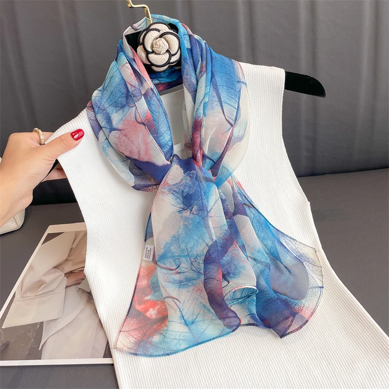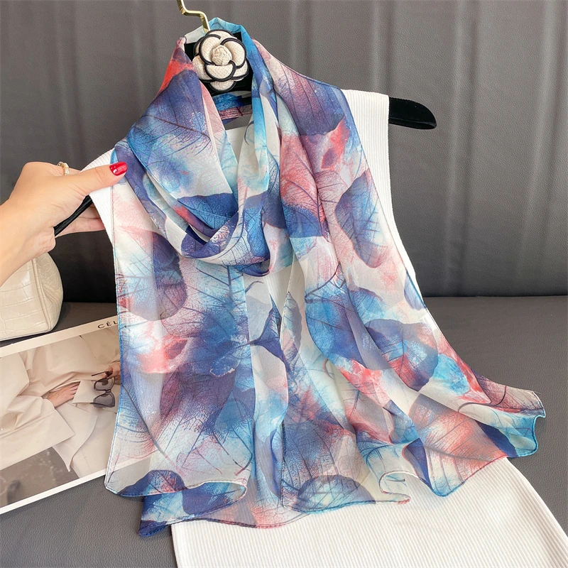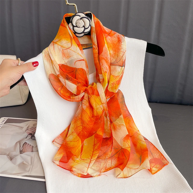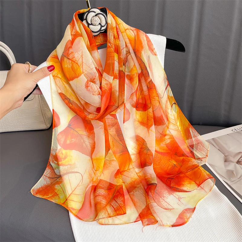 وشاح نسائي للشاطئ من علامة تجارية فاخرة شالات حريرية جورجيت بتصميم مطبوع عقال نسائي صيفي أغطية رأس حجاب واقي من الشمس 2023