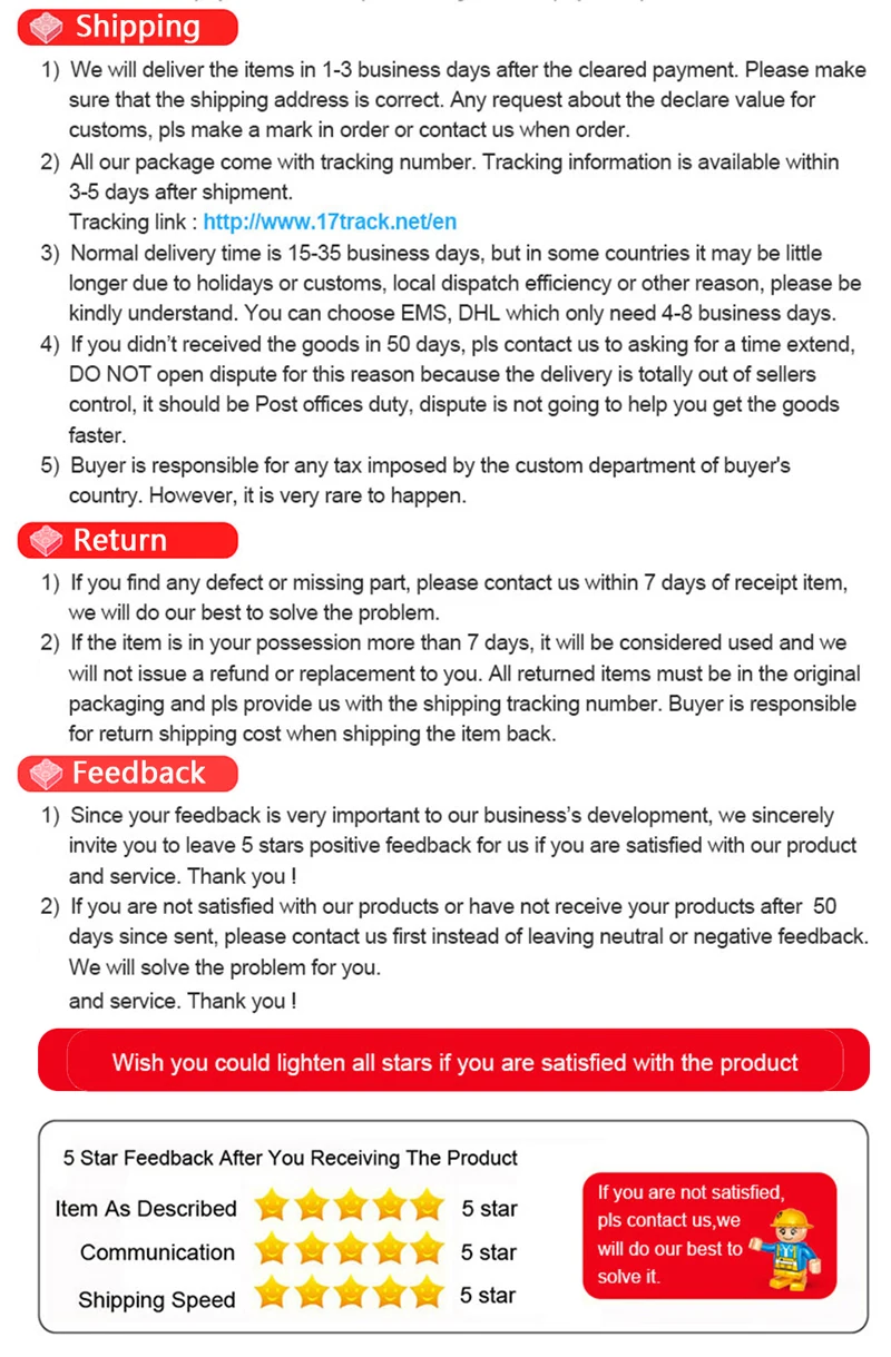 2. إذا كانت هناك أجزاء مفقودة عند استلام النموذج ، الرجاء الاتصال بنا في المرة الأولى ، شكرًا!
