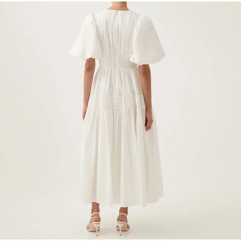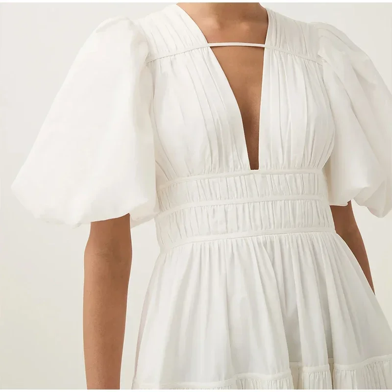| رقم النموذج | Women's Fashion Lace Up White A-line Dress |