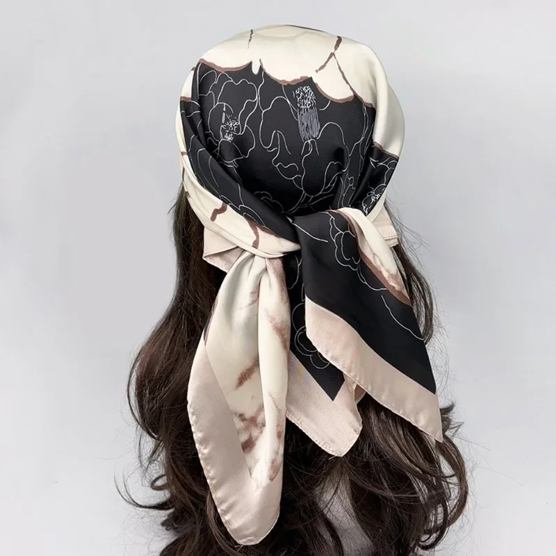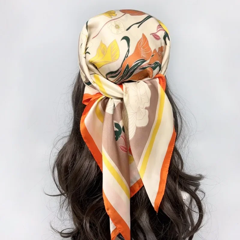 وشاح حريري مربع للنساء ماركة فاخرة ، ربطة عنق ، رباط شعر ، حجاب شاطئ ، منديل ، رباط رأس للرأس ، باندانا ، فولار نسائي ، 70 ،
