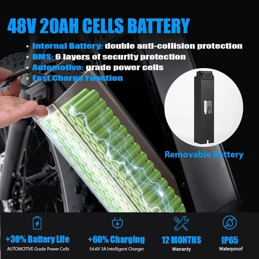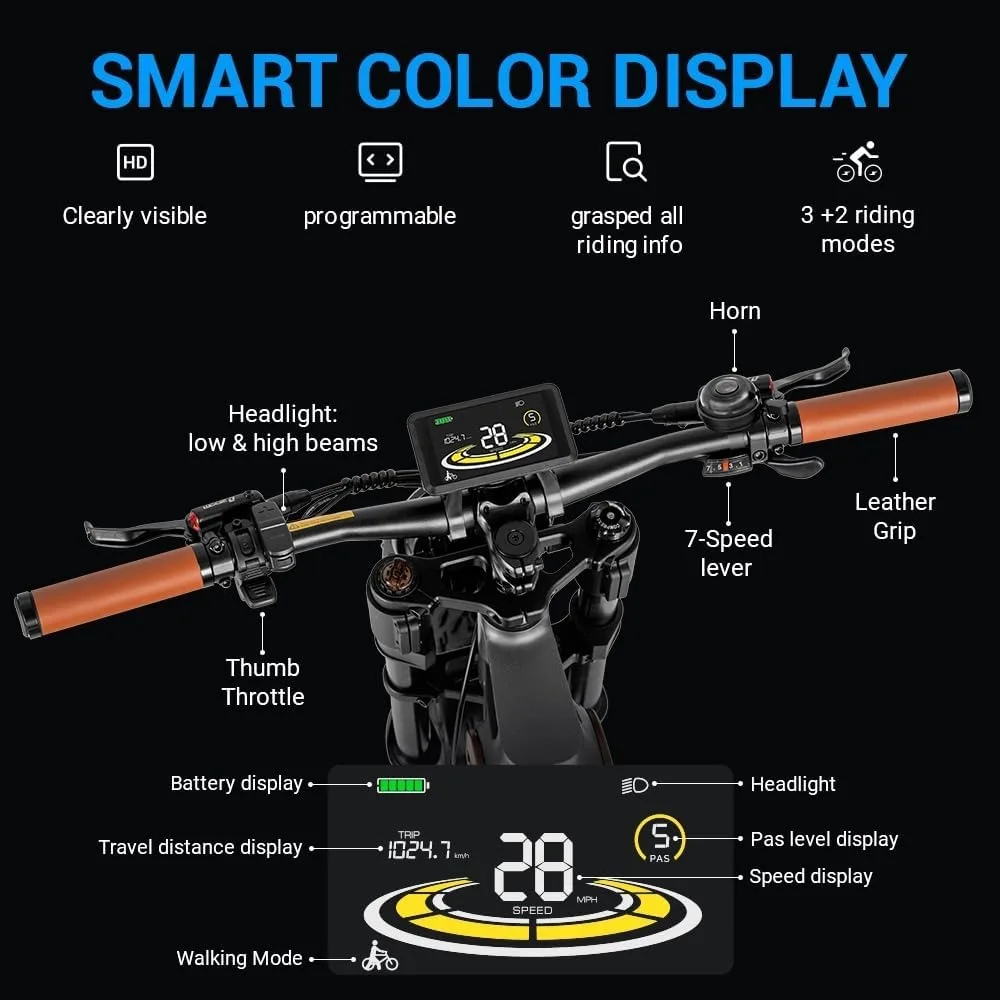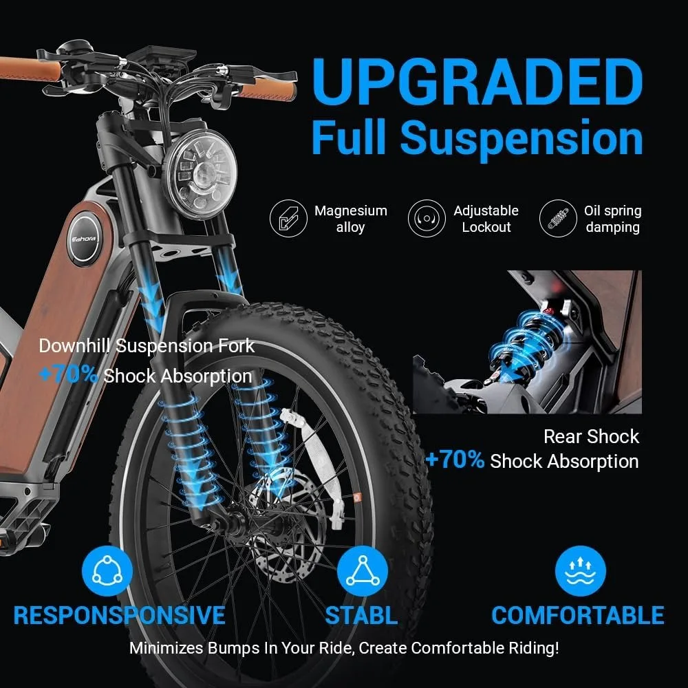1000W Fat Tire Electric Bike 32MPH 48V 20Ah Adult Electric Bicycles Full Suspension Mountain Electric Bike with Large Display