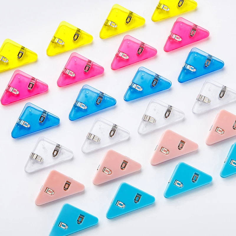 10pcs Triangle Corner Clips Set Transparent Colorful Page Holder Paper Clip File Index Photo Clamp Office School Desk Organizer