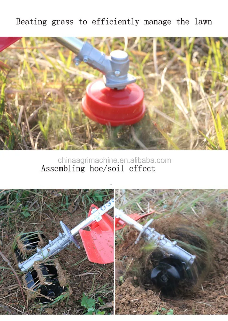 According to the hills, mountains, small land, height difference, and inorganic farming Road and design,Electric lawn mower power weeder weeding machine portable is Suitable for soft sandy land (hard soil is not suitable for use),Note that is not suitable for barren hills, stone, hard and the mud to use for a long time not turn.