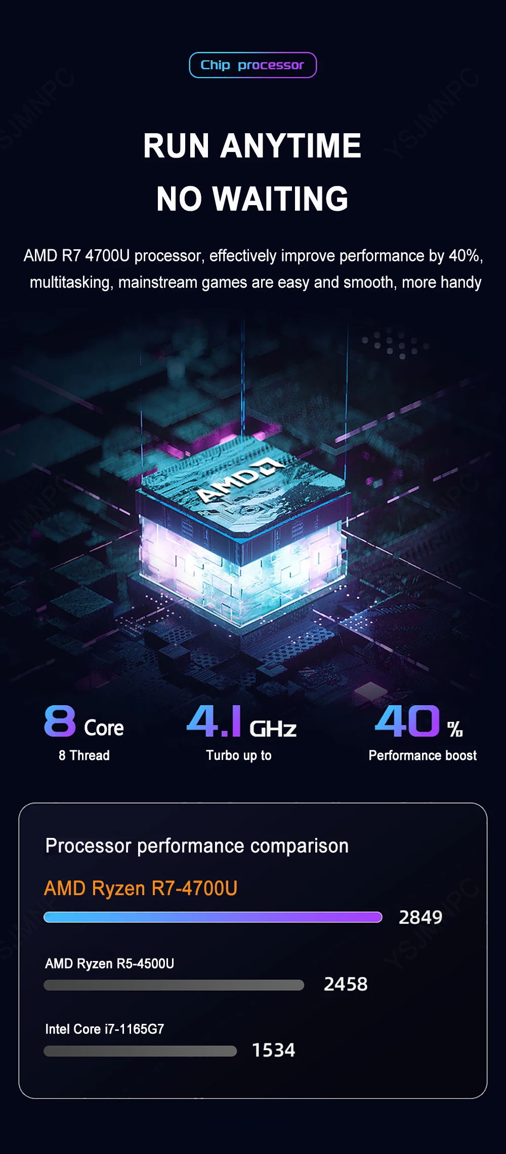 | Processor Model | AMD Ryzen 5 3500U, AMD Ryzen 5 4500U, AMD Ryzen 7 2700U, AMD Ryzen 7 4700U |