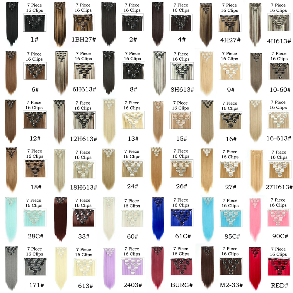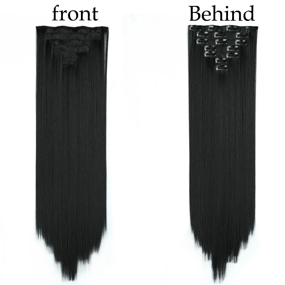 24Inchs 16 Clips in Hair Extensions Long Straight Hairstyle Synthetic Blonde Black Hairpieces Heat Resistant False Hair