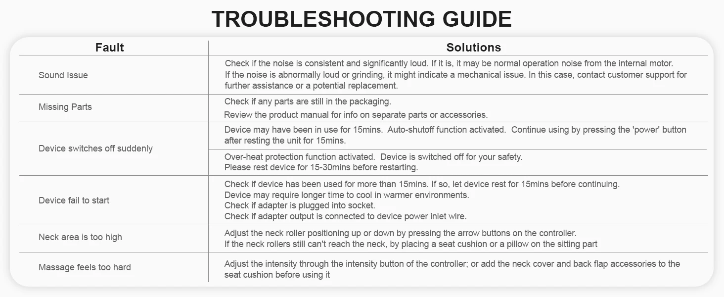 If the neck rollers still can’t reach the neck, by placing a seat cushion or a pillow on the sitting part