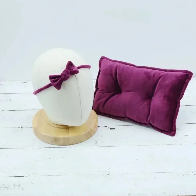 2pc/sets Newborn Photography Props Solid Color Bowknot Hairband and Posing Pillow Cushion Mats Infant Photoshoot Accessories