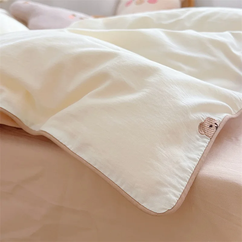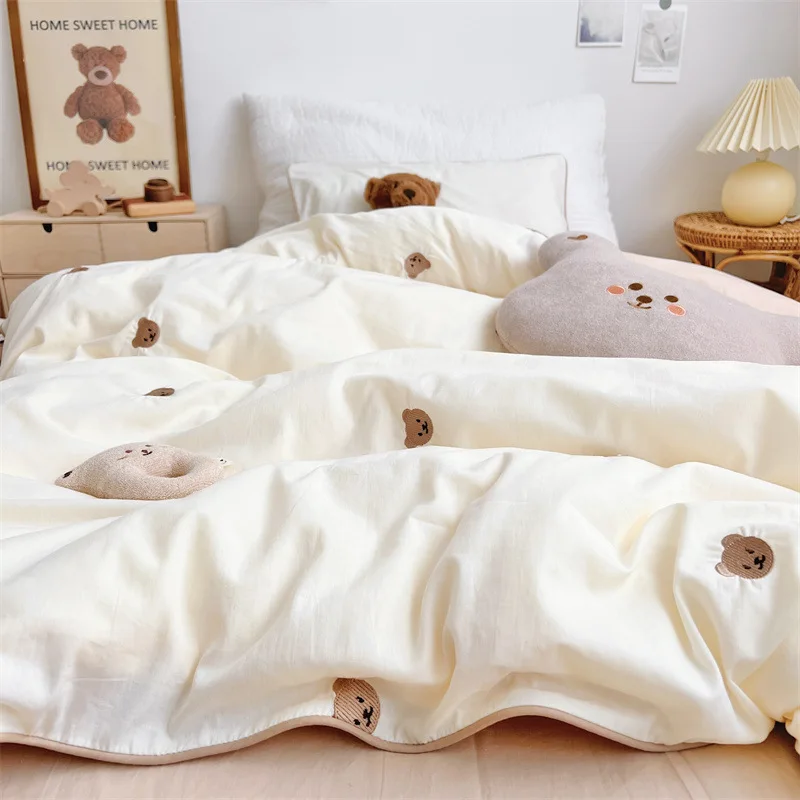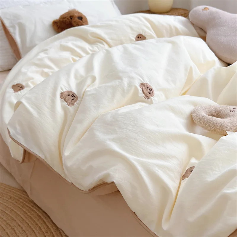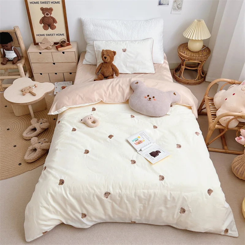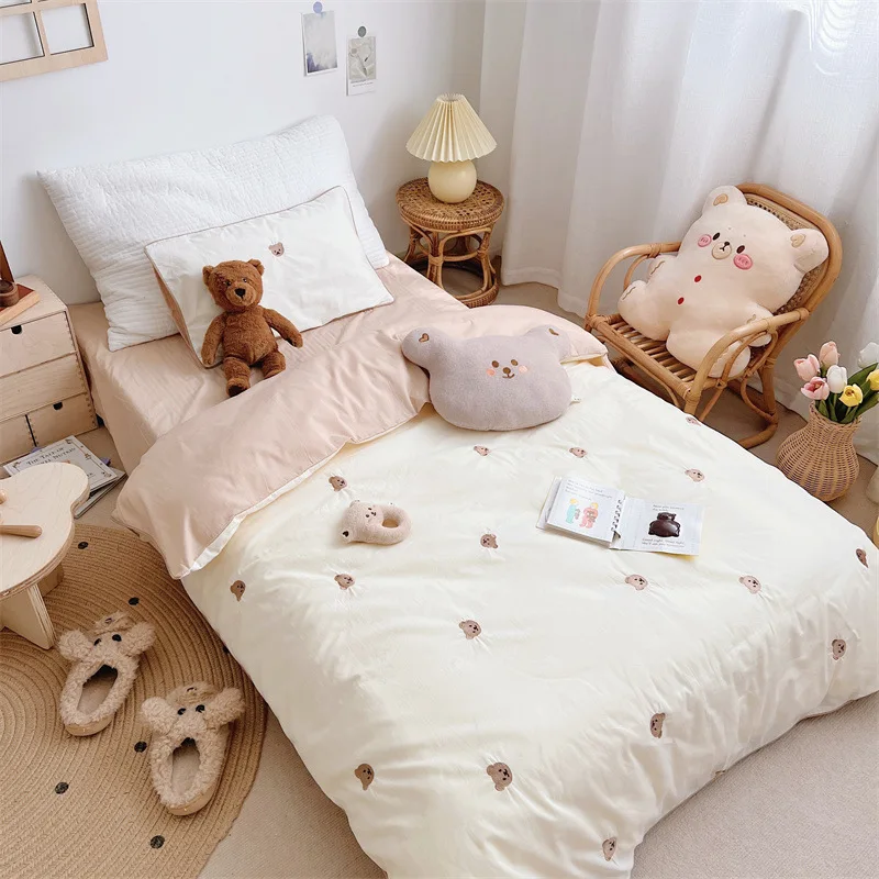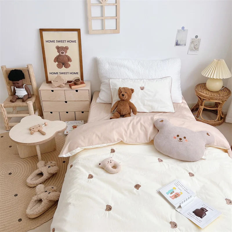 3PCS Baby Boys Bedding Set Bear Embroidered Cot Crib Bedding Set Cotton Korean Baby Bedding Duvet Cover+ Sheet+Pillowcase