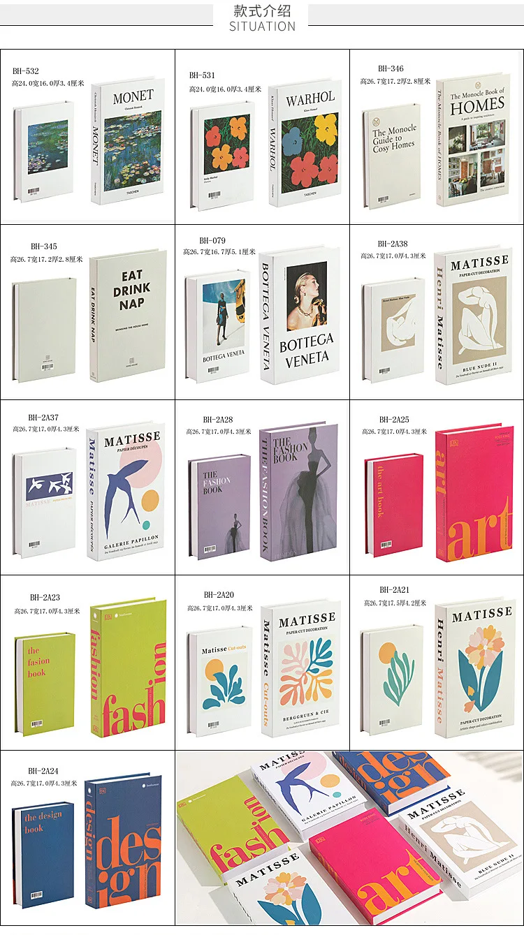 About size: please refer to the size in the following picture list, in CM. In order to show the effect, we have made the best combination. The size of the decorative books is different, please refer to the actual object received