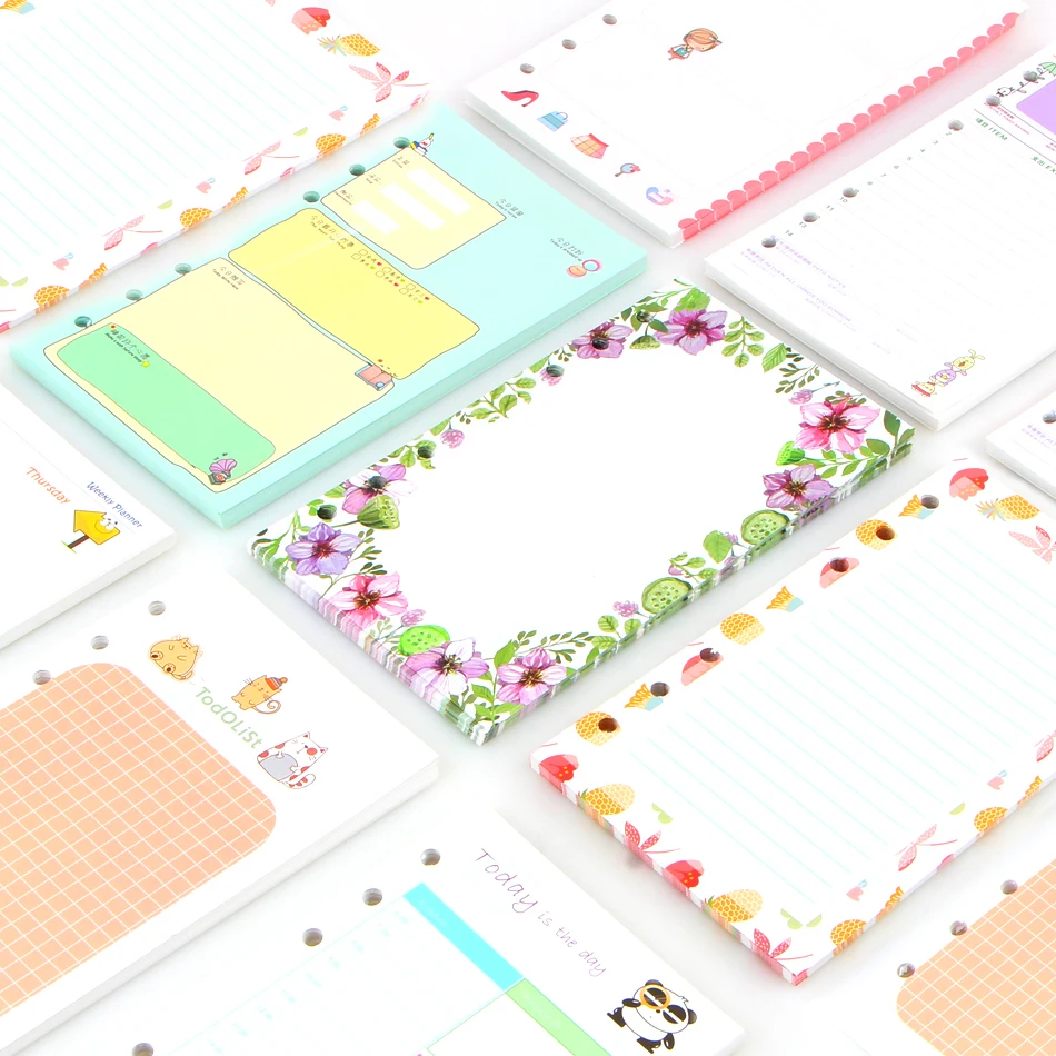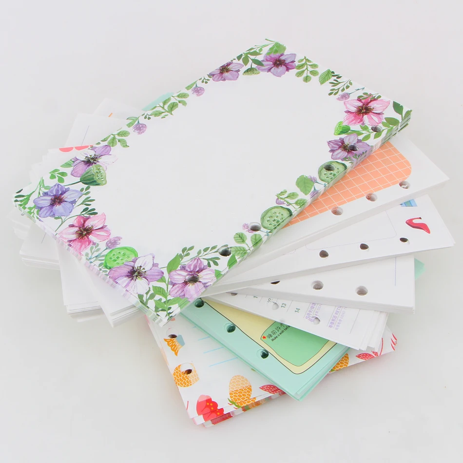 40 sheet/pack A6 A5 Colorful Refills Spiral Notebook Inner Pages 6 holes Loose Leaf Diario Binder Paper Planner Filler Paper
