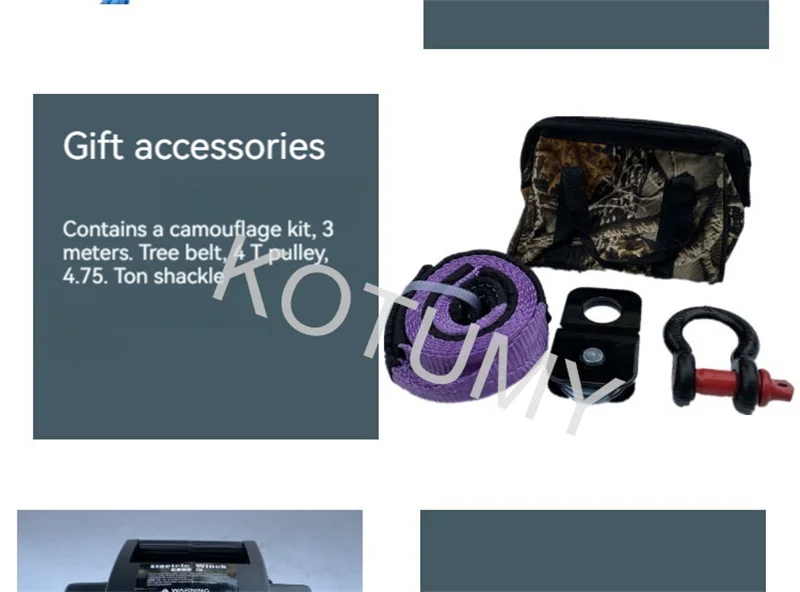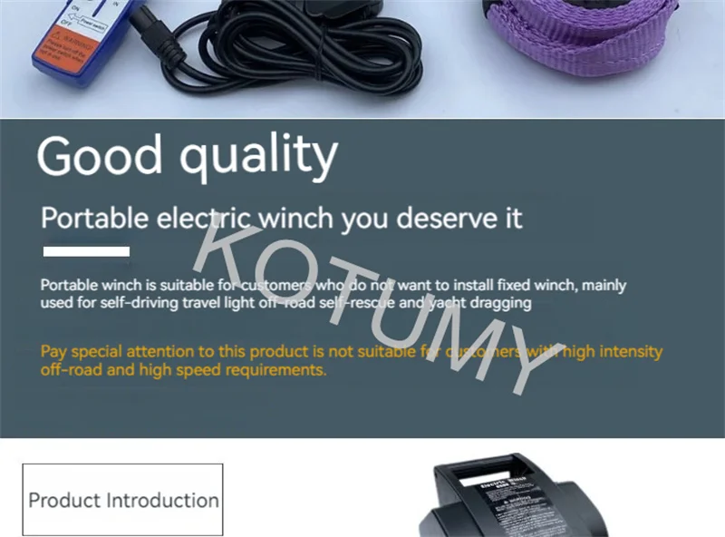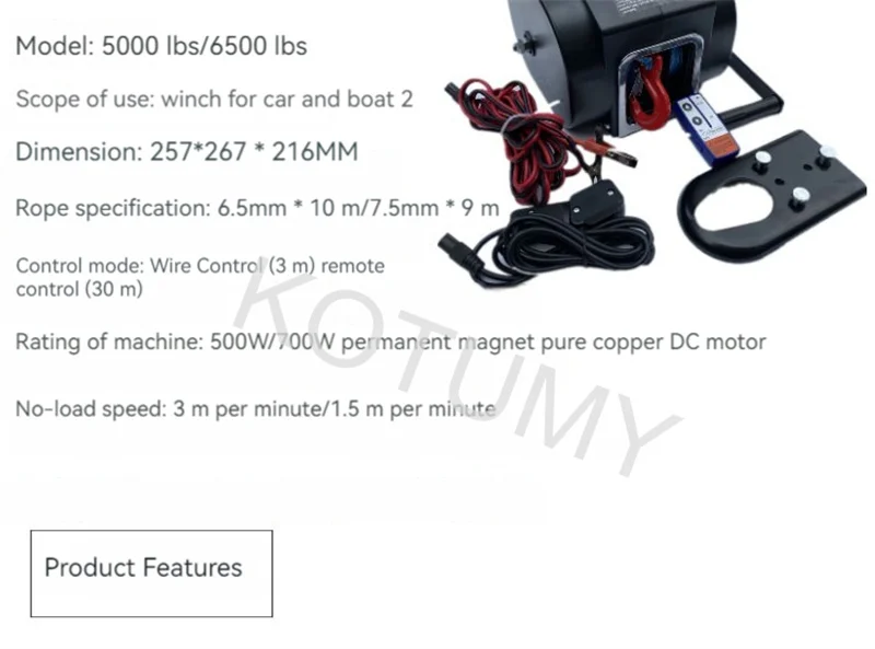 5000 Pounds Portable Electric Winch Yacht Towing Self Driving Self Rescue Winch Marine Self Driving Tour Wire Control 12V