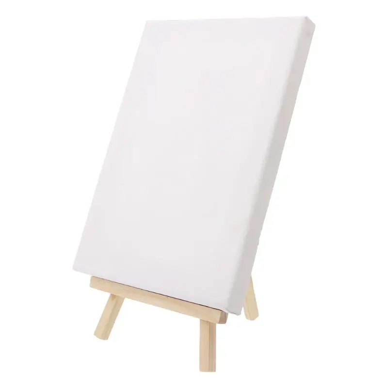 Blank Stretched Mini Canvas with Mini Wood Easel Set.