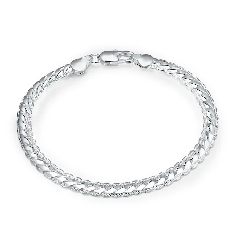 New 925 Sterling Silver 2 Piece Full Sideways Chain Necklace Bracelet For Women Men Fashion Jewelry Sets Wedding Gift
