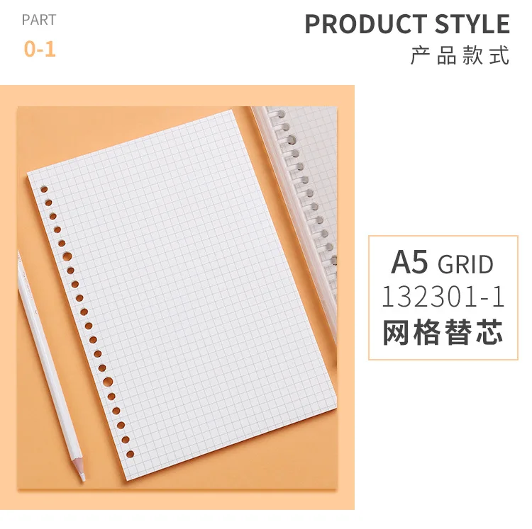 A5 B5 20Holes Loose-Leaf Notebook Refill 60Sheet Spiral Binder Paper Index Inside Page Dot Grid Blank Connell Stationery