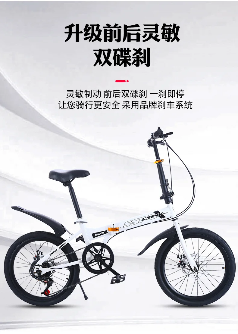 Adult Folding Bicycle 20 Inch Ultra-Light Portable Installation Double Disc Brake Variable Speed Mountain Bike