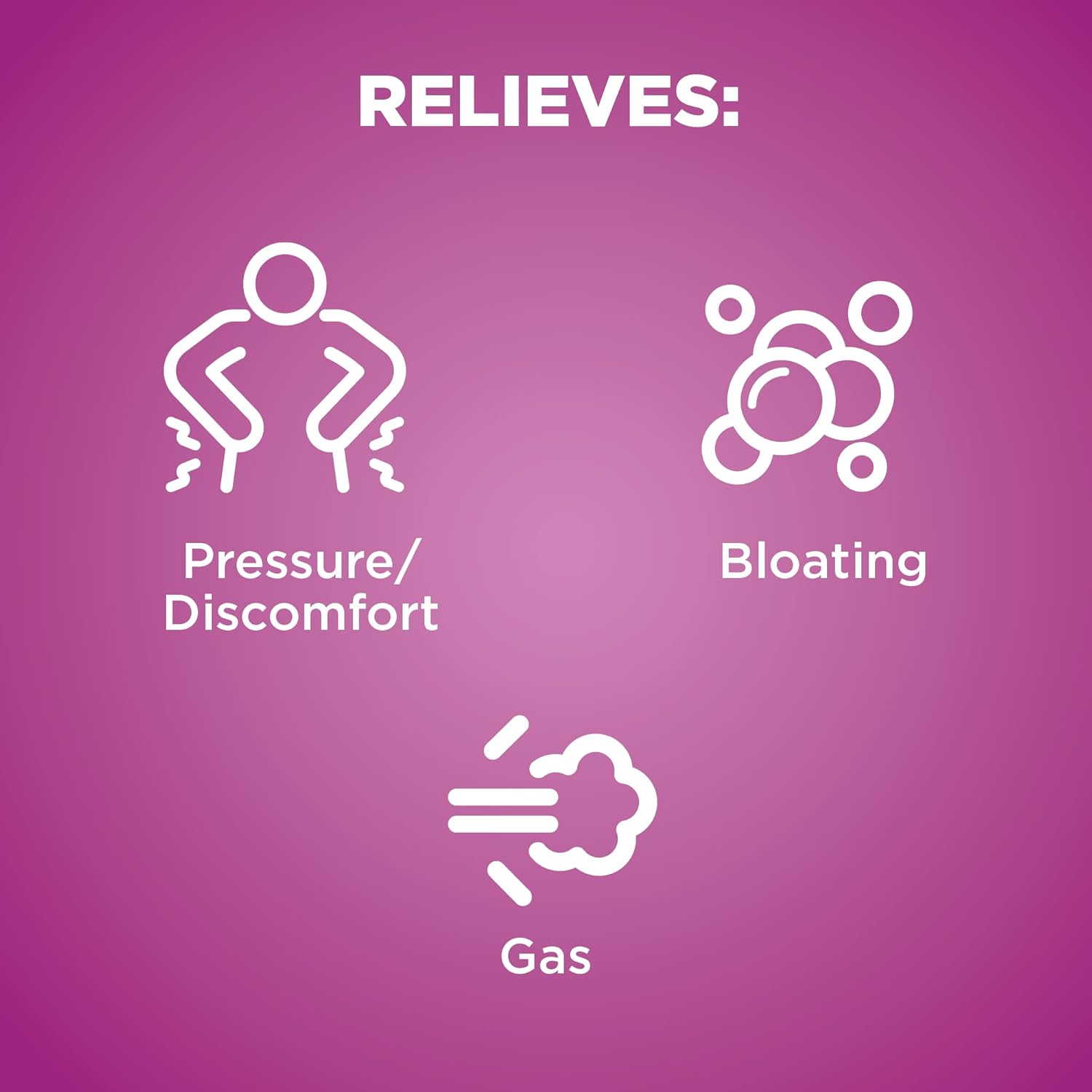 About this item ACTIVE INGREDIENT: Simethicone 180 mg; doctor-recommended anti-gas active ingredient (Of U.S. physicians surveyed by an independent market research firm); compare to active ingredient of Ultra Strength Phazyme TUMMY TROUBLE Put discomfort, pressure and bloating of intestinal gas in the past; these softgels are concentrated in a small softgel so it is easy to swallow SIMETHICONE 180 mg is a powerful ingredient for fast gas relief; put this fast-acting gas and bloating relief medicine to work for you SMALL SOFTGELS are easy to swallow, yet still contain a fast-acting dose of simethicone, an anti-gas medicine; one dose delivers power to relieve discomfort, pressure and bloating known as gas GLUTEN FREE: Softgels for bloating and gas relief are gluten free, easy to swallow; fast relief from pressure, bloating and gas discomfort