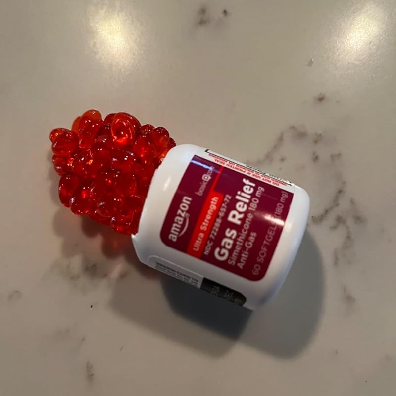 Amazon Basic Care Ultra Strength Gas Relief Softgels, Simethicone 180 mg, Antigas, 60 Count, Orange Health & Household
