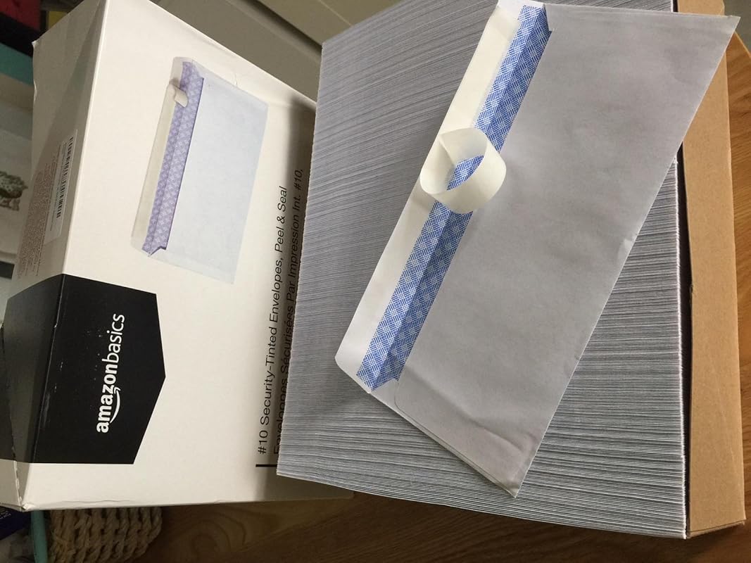 Amazon Basics #10 Envelopes, Security Tinted, Peel & Seal, White – 500-Pack.