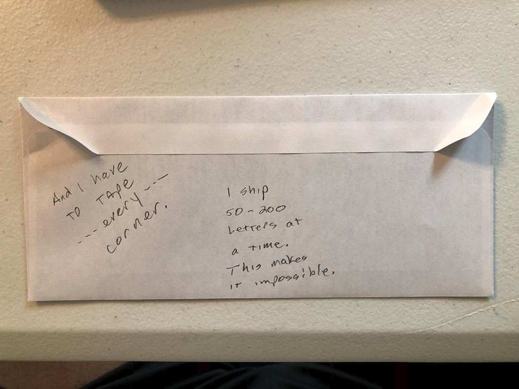 If you need a lot of these, this is a great value. Adhesion is great, and you can’t read through the envelope. I think I now have enough to last me the next decade.