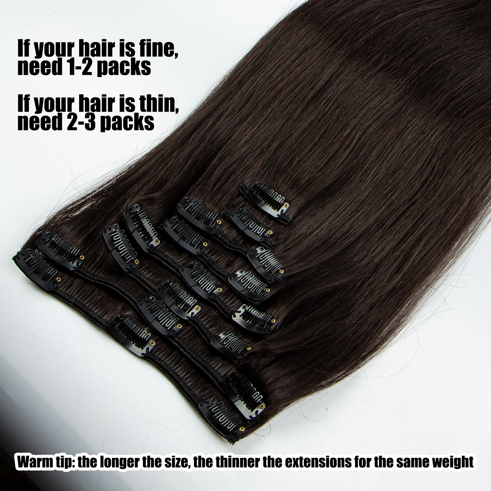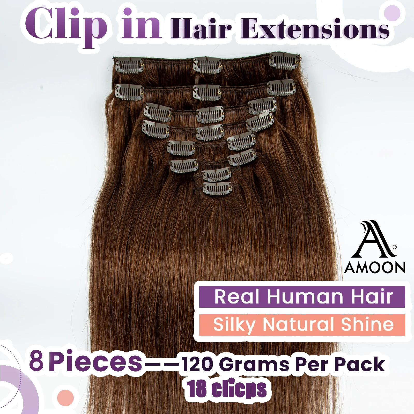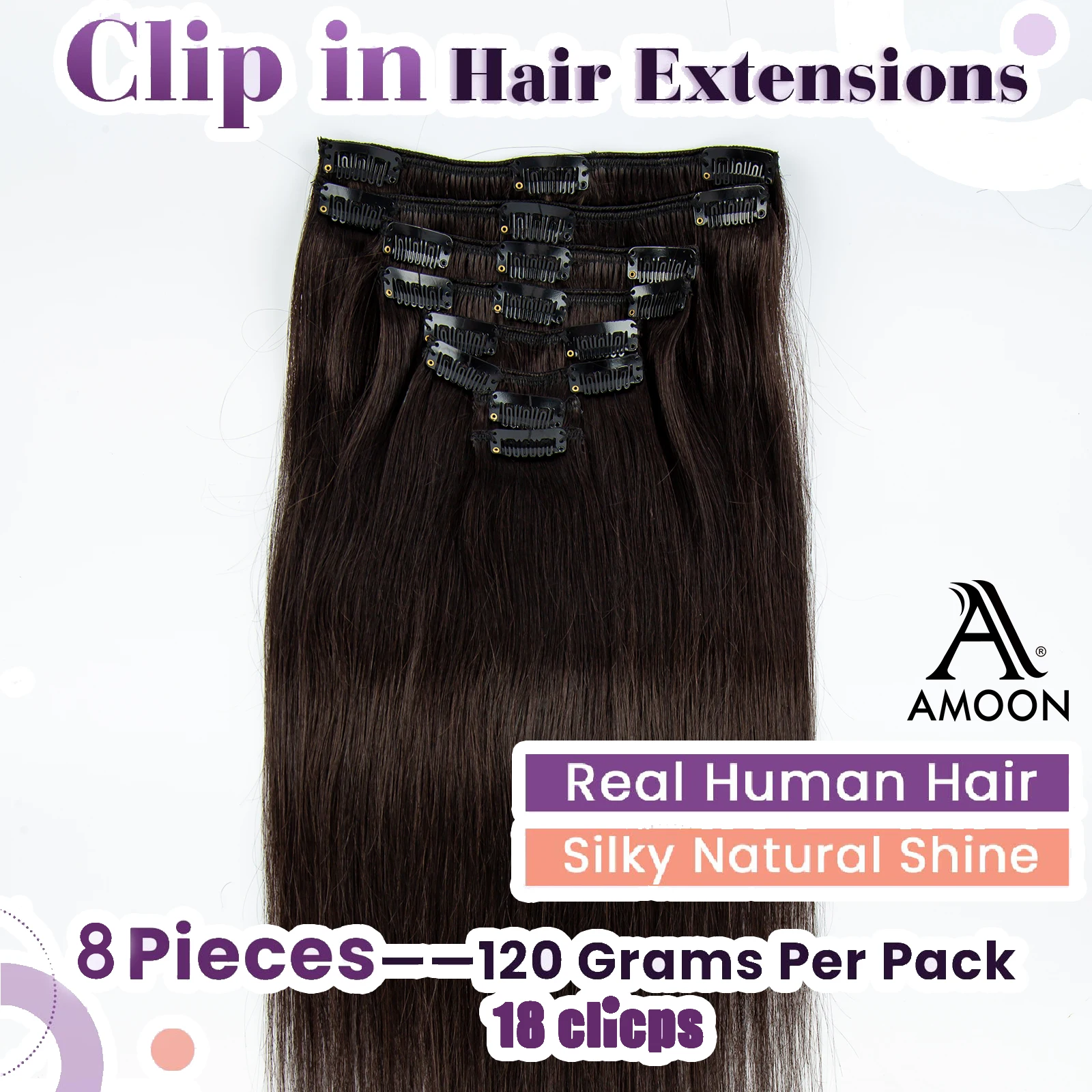 Amoon 8pcs Clip in Hair Extensions Real Natural Hair Remy Straight Set Black Brazilian Clip in Human Hair Extensions