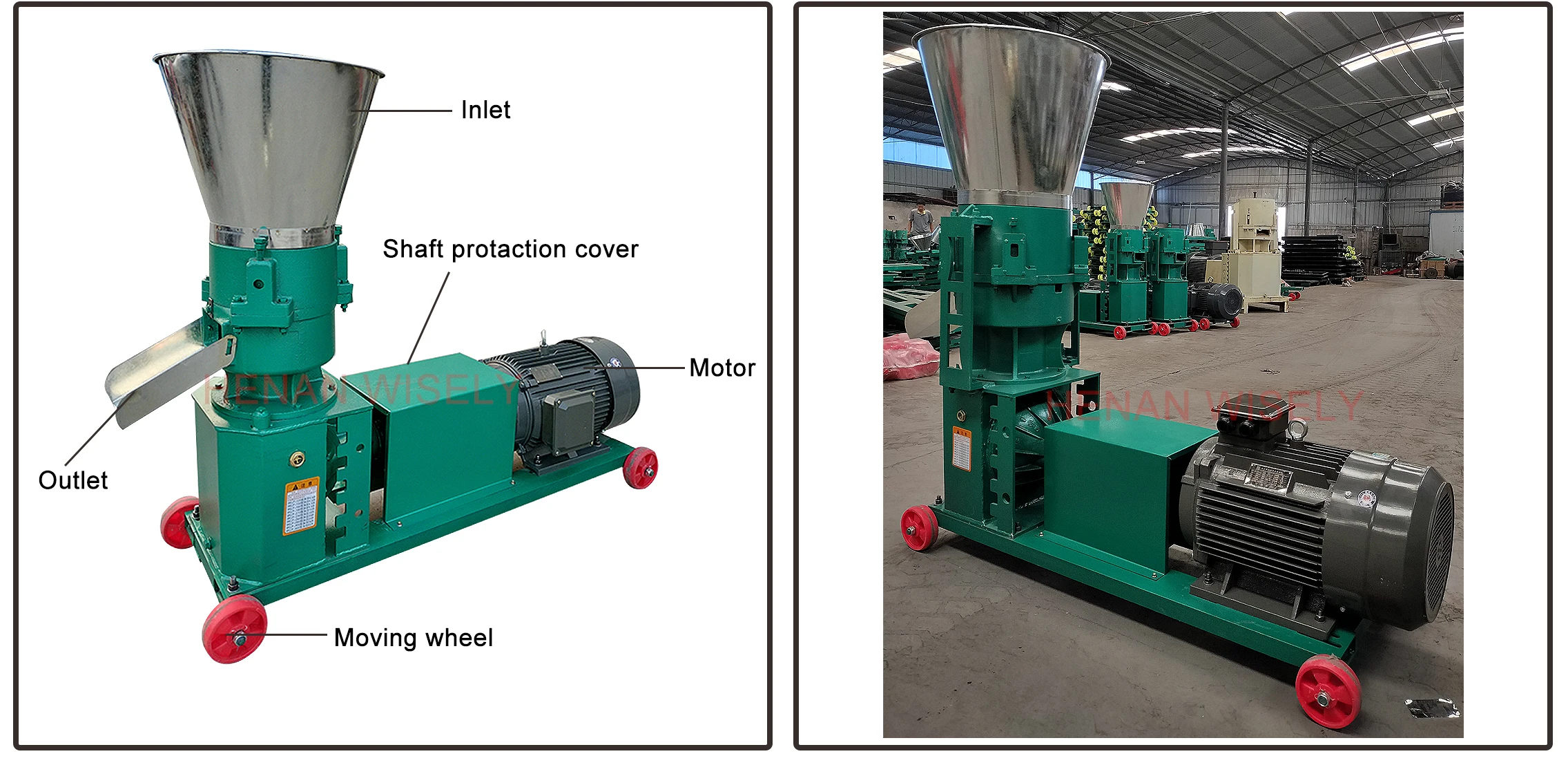 The feed pellet processed by feed pellet machine are smooth, uniform and moderate hardness.Pellet size can be achieved by changing different grinding disc.