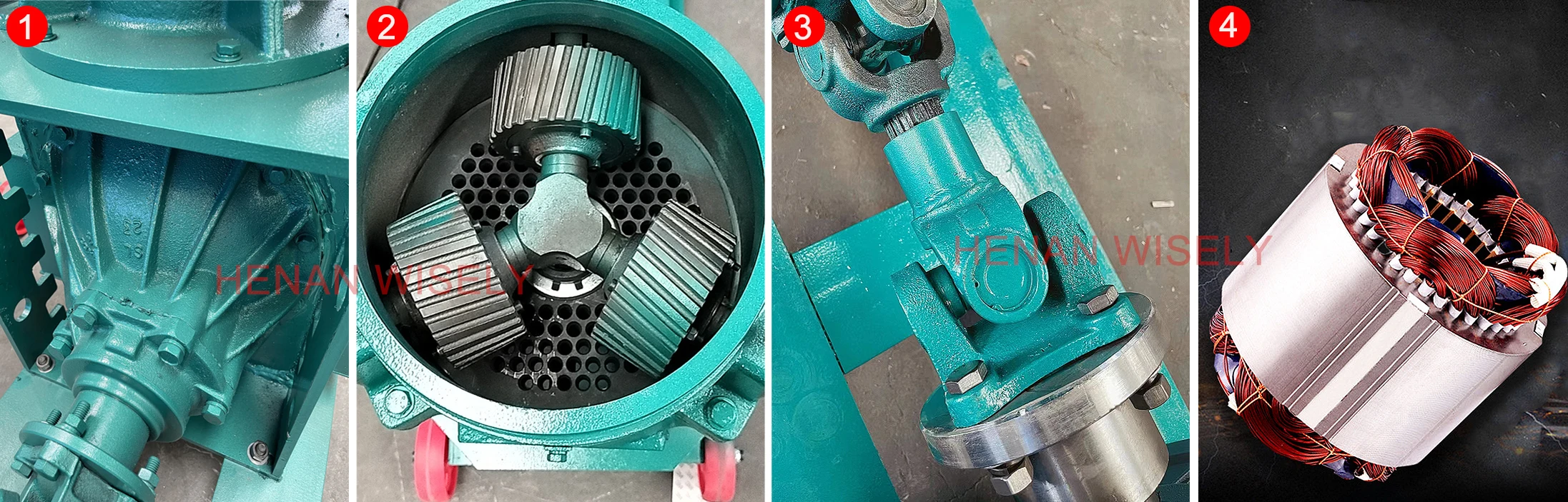 2.Through the shaft without welding large press wheel, twill press wheel, can effectively reduce resistance, built-in grinding disc, large holes, each press wheel has holes, late maintenance can be maintained.
