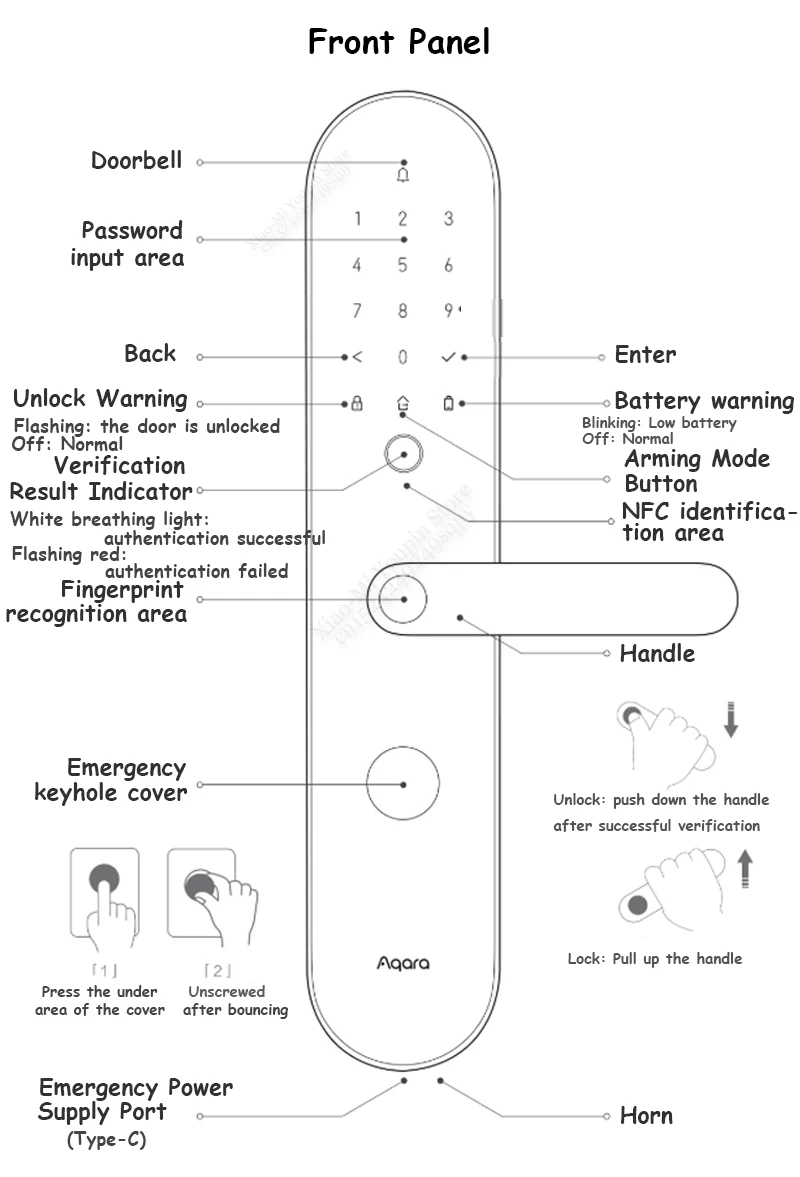 After the door lock is installed and before entering the fingerprint/password, you must remember the administrator password set so that the subsequent door lock can be used normally. If the product cannot be used normally due to forgetting the administrator password, it will not be covered by the warranty and after-sales service cannot be provided. If the user forgets or loses the administrator password, he can only purchase accessories at his own expense and try to repair it.