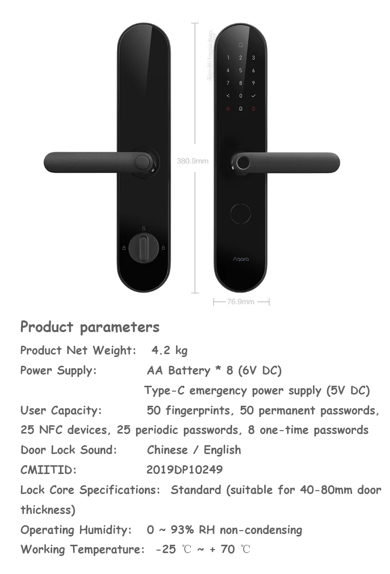 Aqara N100 N200 Smart Door Lock Fingerprint Bluetooth Password NFC Unlock Works with Mijia HomeKit Smart Linkage with Doorbell