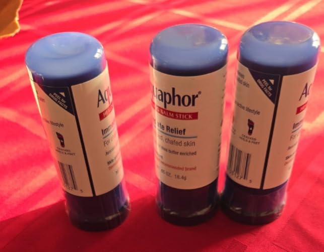 About this item DESIGNED FOR ACTIVE LIFESTYLES: Aquaphor Healing Balm Stick is a multi-purpose skin care product for anyone seeking relief from chapped, chafed or very dry skin and is ideal for active lifestyles SOOTHES IRRITATED SKIN: The Aquaphor Healing Balm Stick can be used as a chafe stick to help prevent chafing and it provides soothing care for dry, irritated skin; friction and windburn; and cracked heels and feet MOISTURIZED AND PROTECTED: Aquaphor Healing Balm Stick contains Petrolatum (a skin protectant) and is enriched with avocado oil and shea butter, leaving skin feeling moisturized and protected CONVENIENT AND MESS FREE: Aquaphor Healing Balm Stick provides a convenient, mess-free application and is the perfect size for your purse or gym bag PERFECT HOLIDAY GIFTS: Ideal for holiday gifting, the Aquaphor Healing Balm Stick makes a perfect addition to any skin care gift set INCLUDES: One (1) 0.65 ounce Aquaphor Healing Balm Stick, Skin Protectant › See more product details