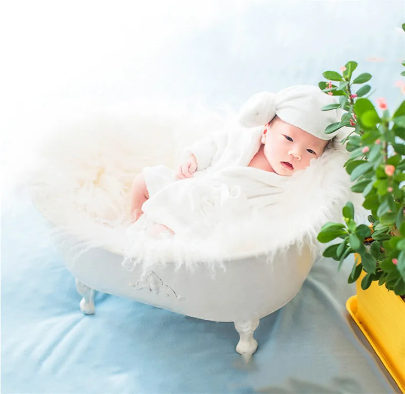 Baby Boy Props for Photography Iron Bathtub for Children with Bubble Cotton Photo Shoot for Kids Newborn Photography Props Bed