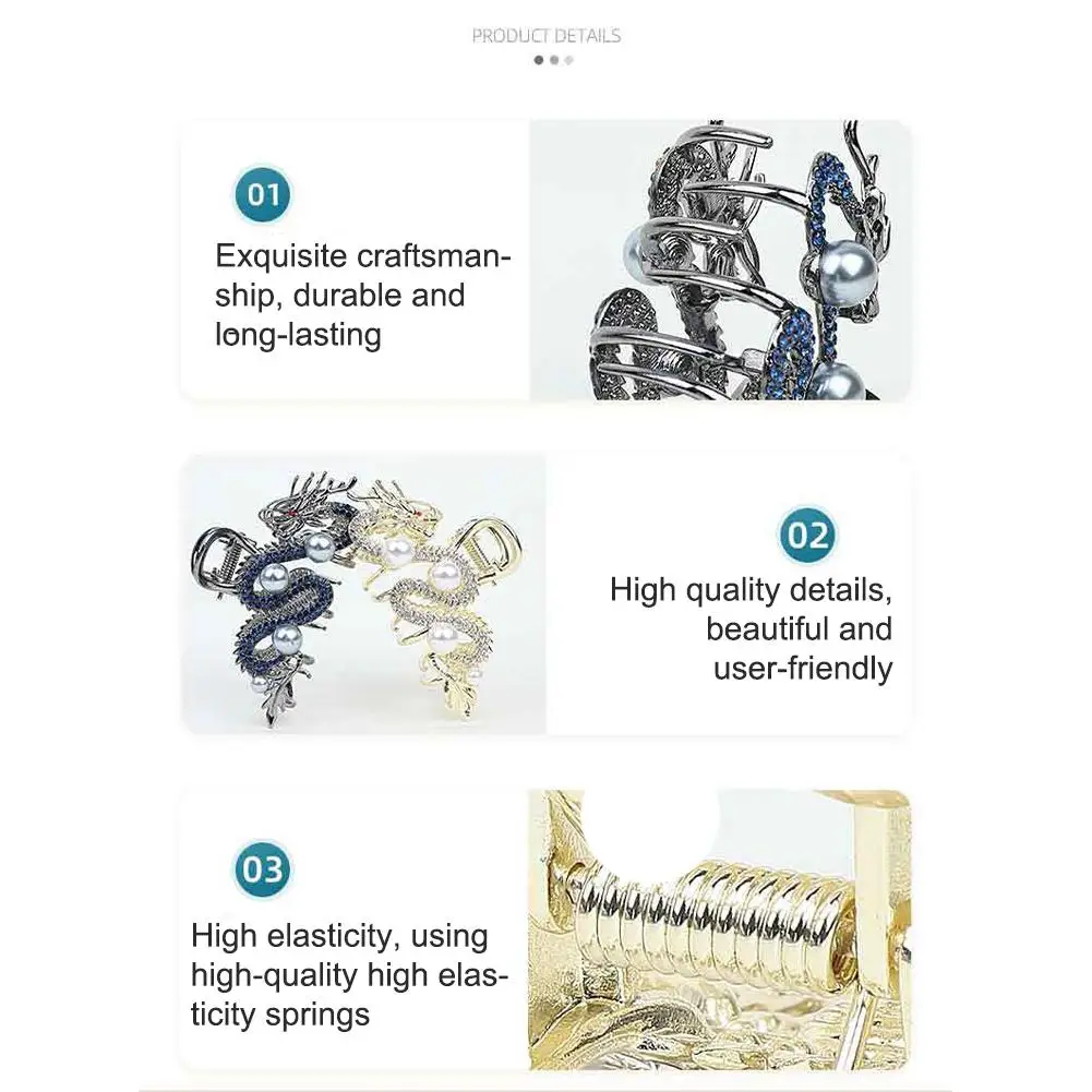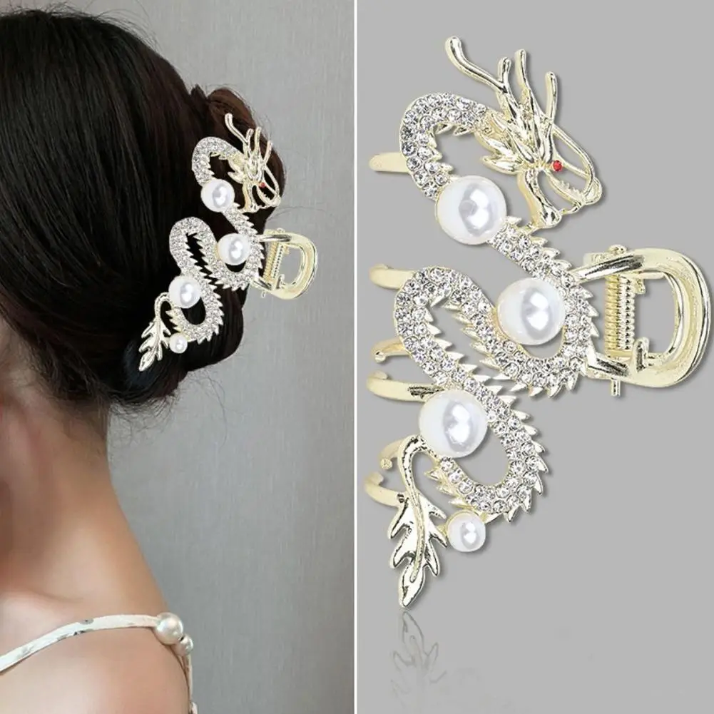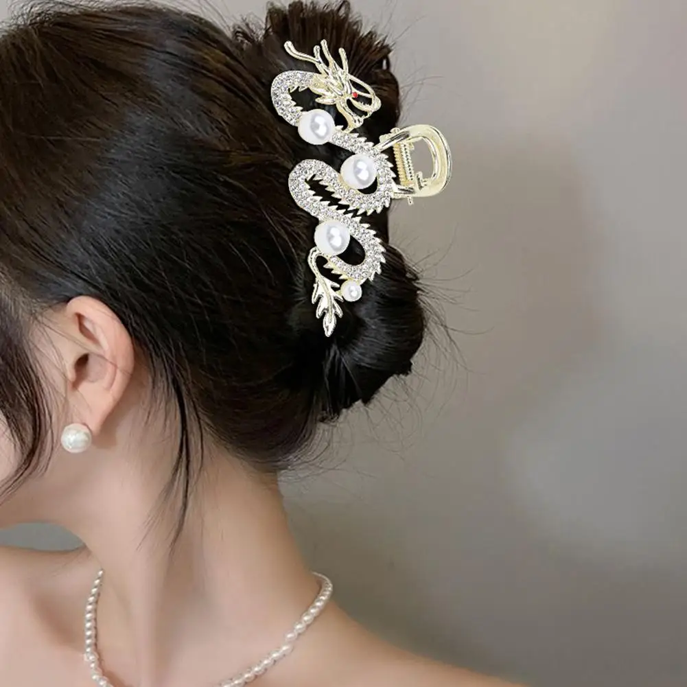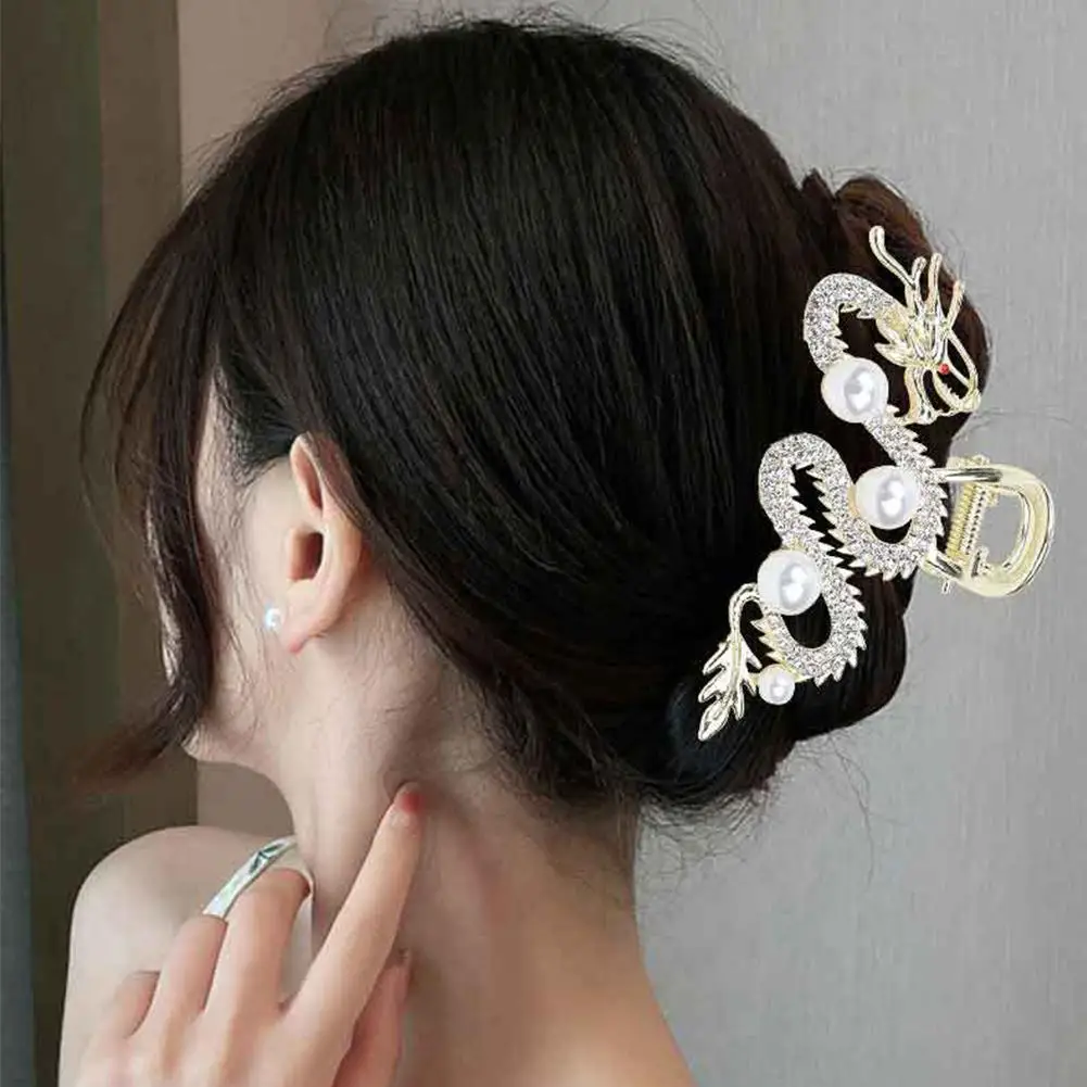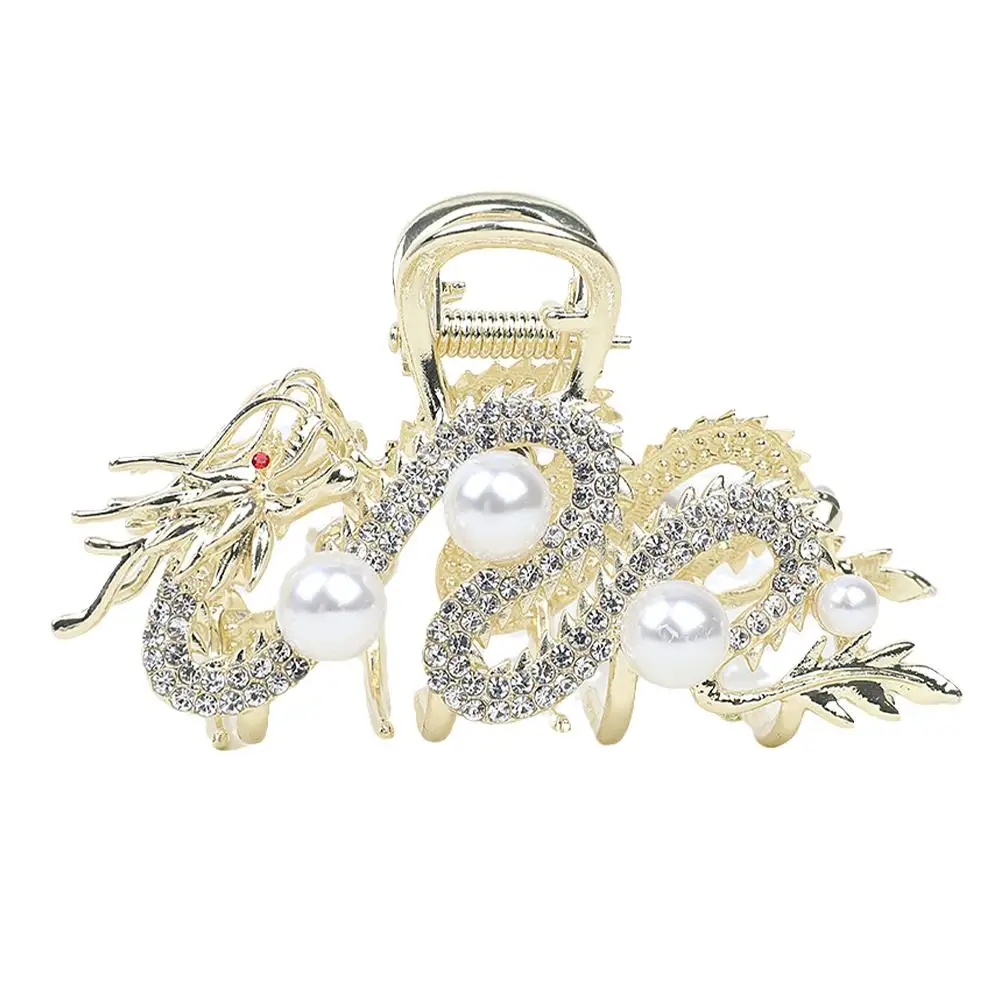 1. Metal dragon-shaped half-tied hair gripper, unique design, with strong and pearl decoration, showing a unique sense of fashion.