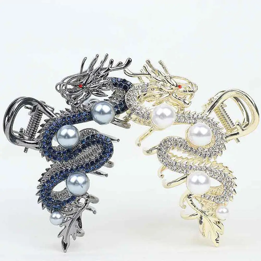 Blue Dragon Hairpin With Pearl Hair Claw Women Simple Hair Claw Hairpin Shark Clip Fashion Temperament Simple Hair Accessories
