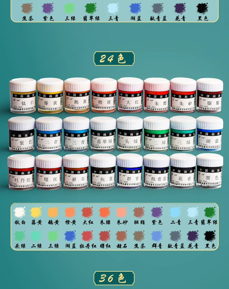 Canned Chinese Painting Pigment Large Capacity 12 colors 36 colors Beginner