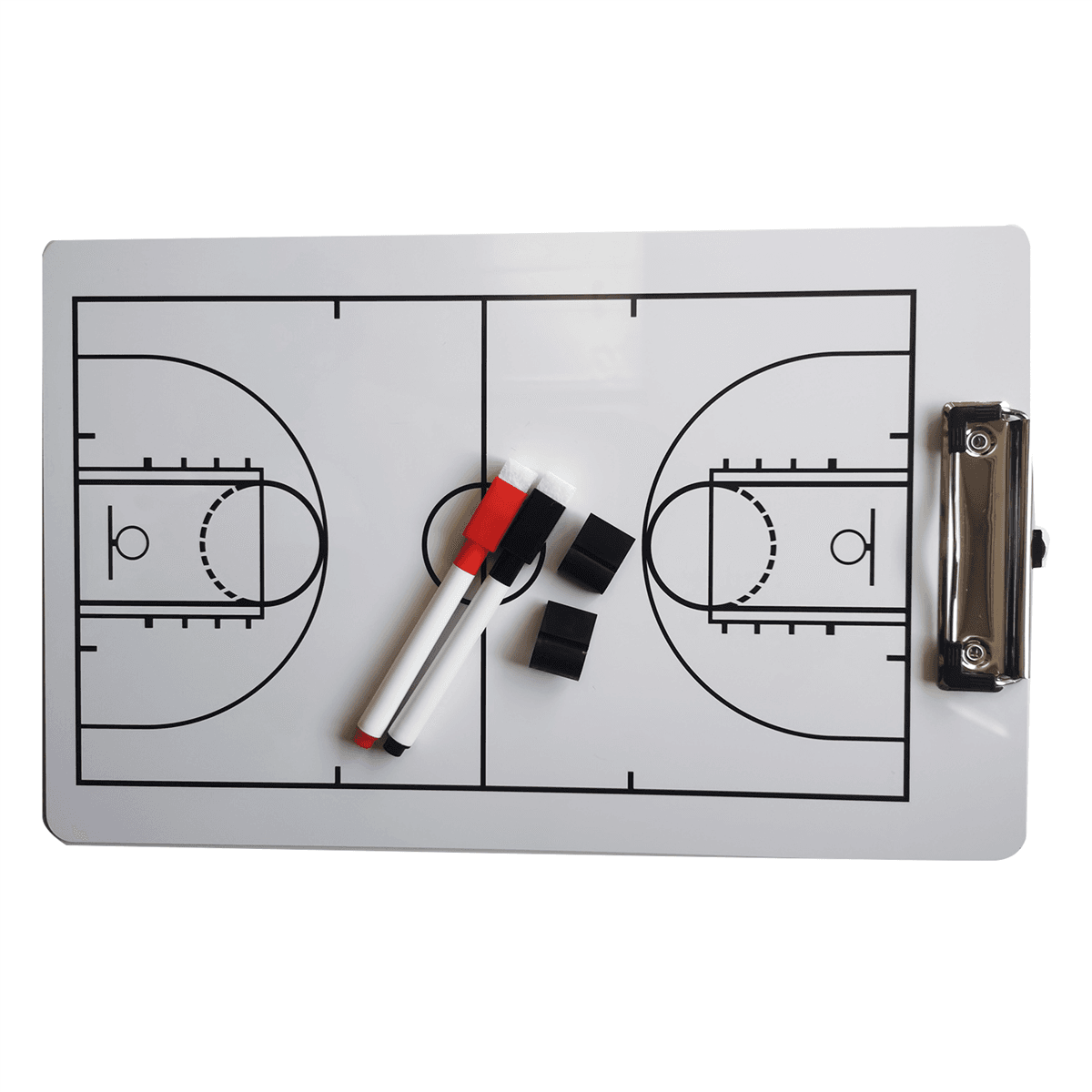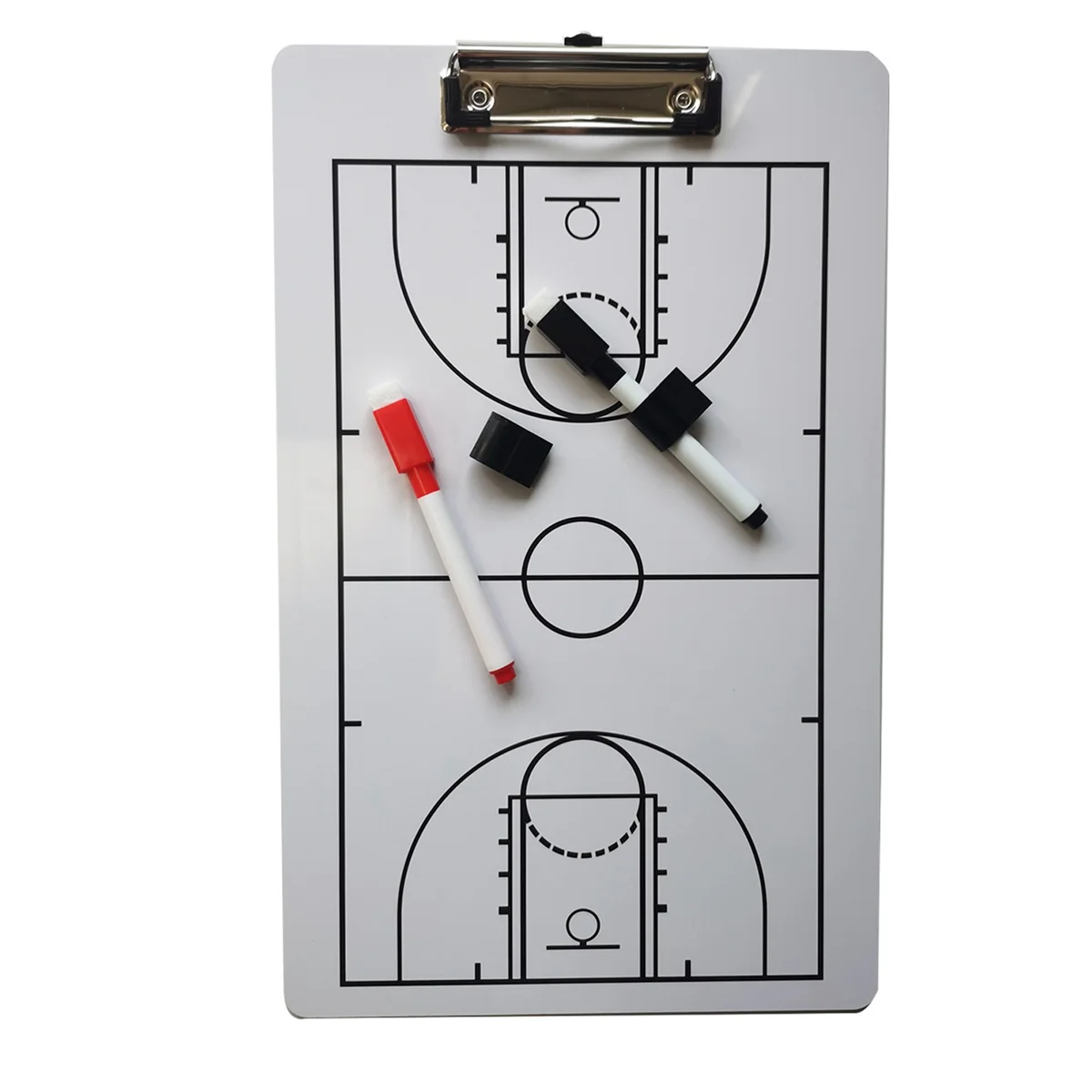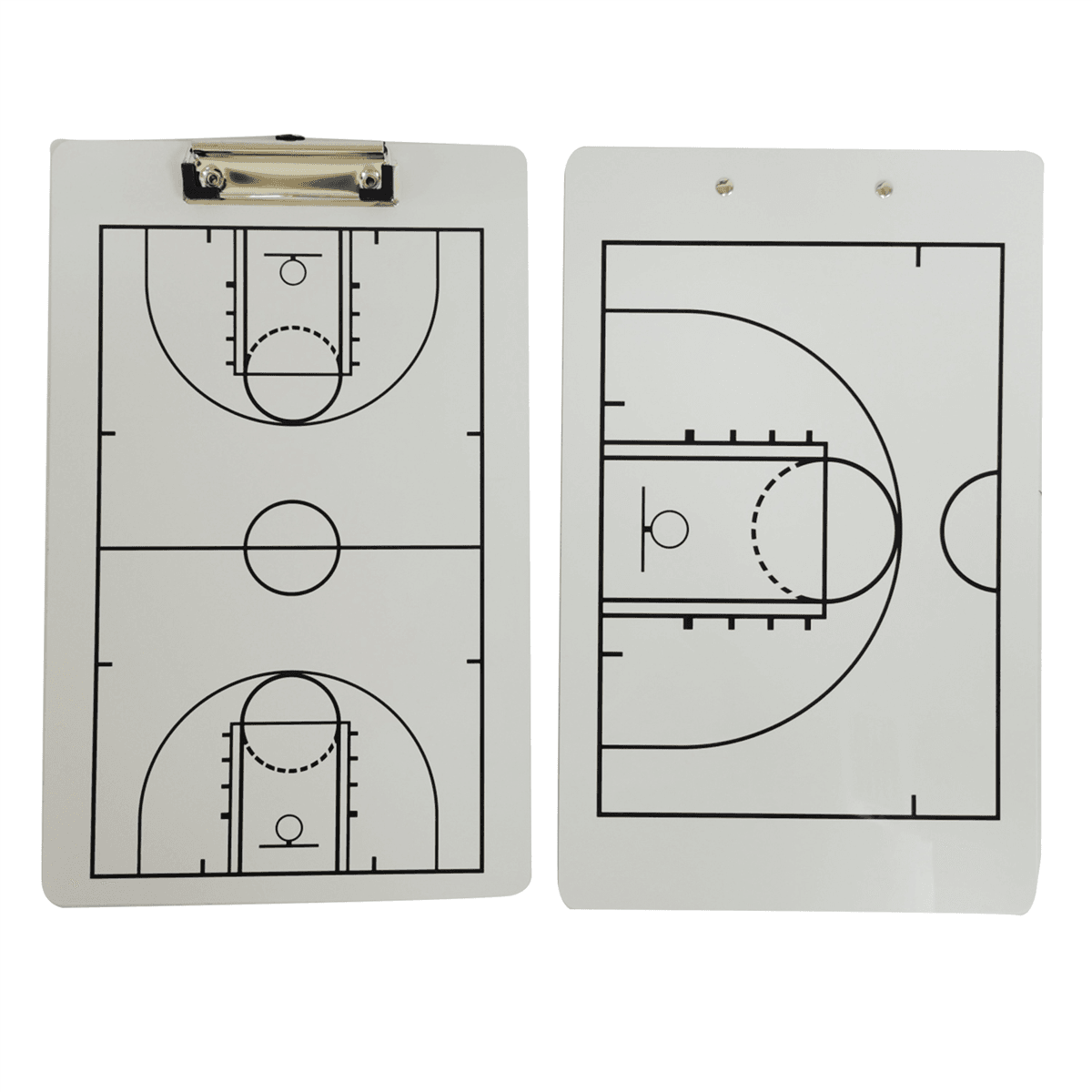 This basketball clipboard dry erase for coaches is double sided design, full field on the front helps establish positioning and formulate strategies, enlarged half field and key points on the back allow recording of game data, choose whichever side works best for you