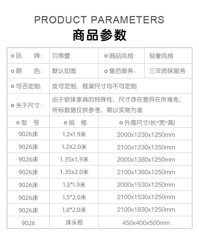 | Color | 1200mm 1900mm, 1200mm 2000mm, 1350mm 1900mm, 1350mm 2000mm, 1500mm 1900mm, 1500mm 2000mm, 1800mm 2000mm |