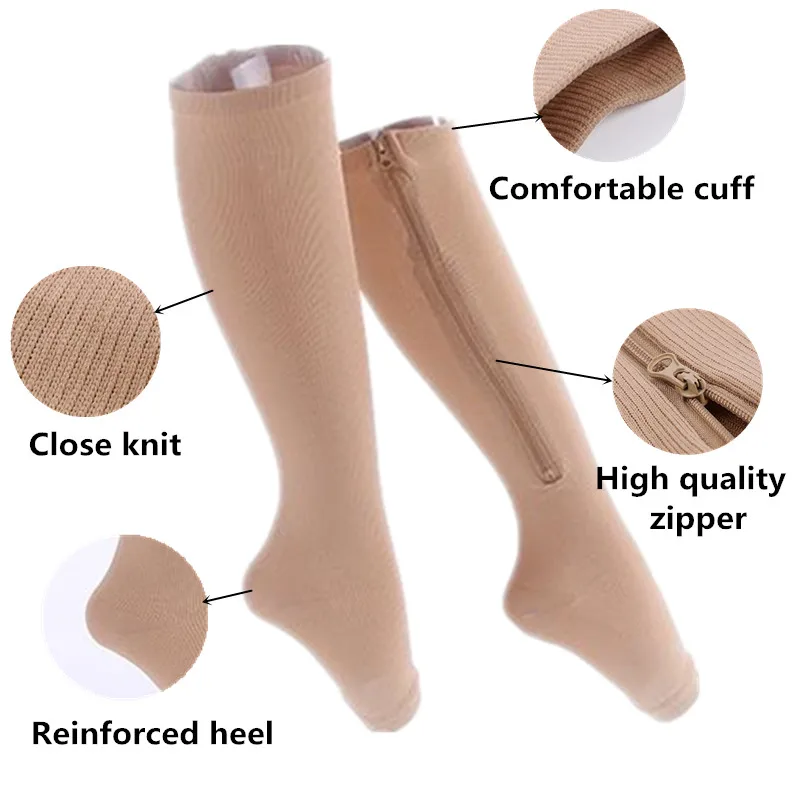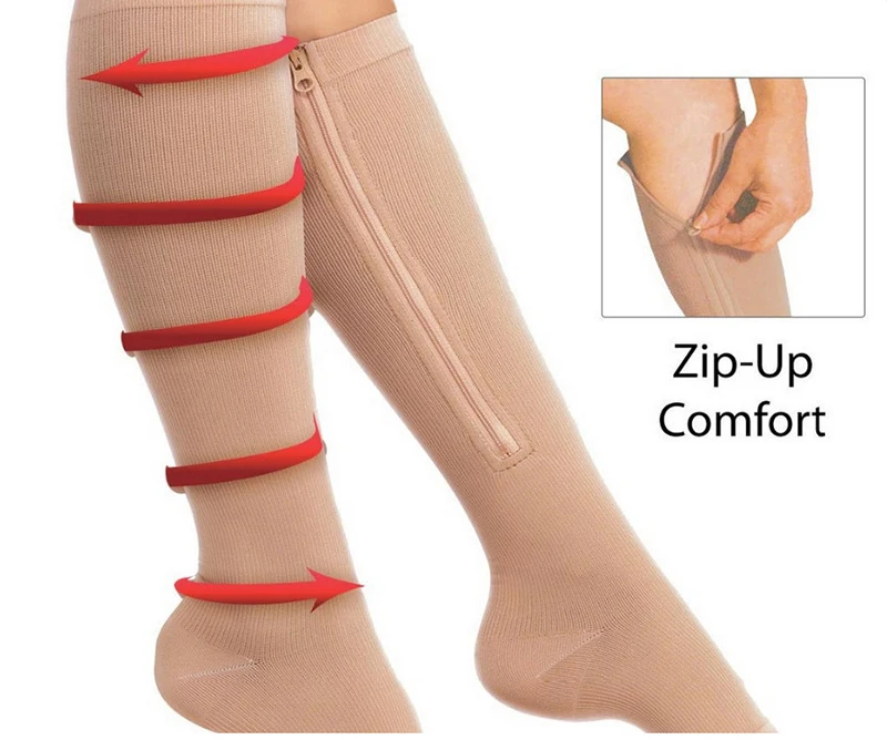 Compression Stockings Sports Pressure Long Cycling Socks Zipper Professional Leg Support Thick Women Varicose Vein Socks