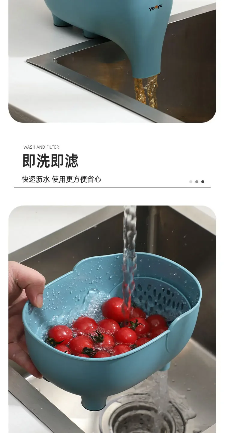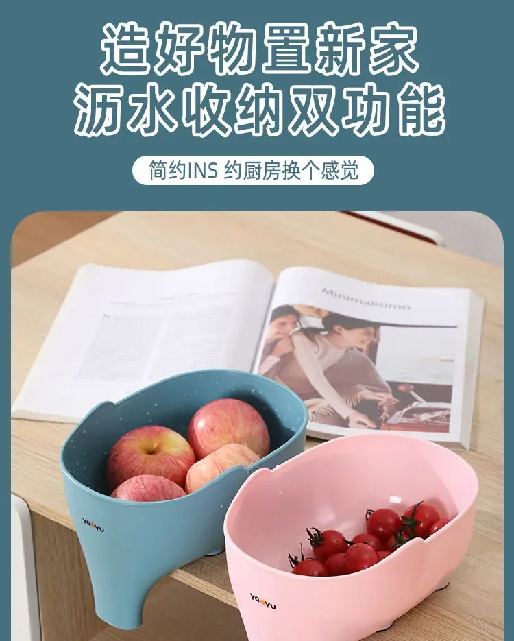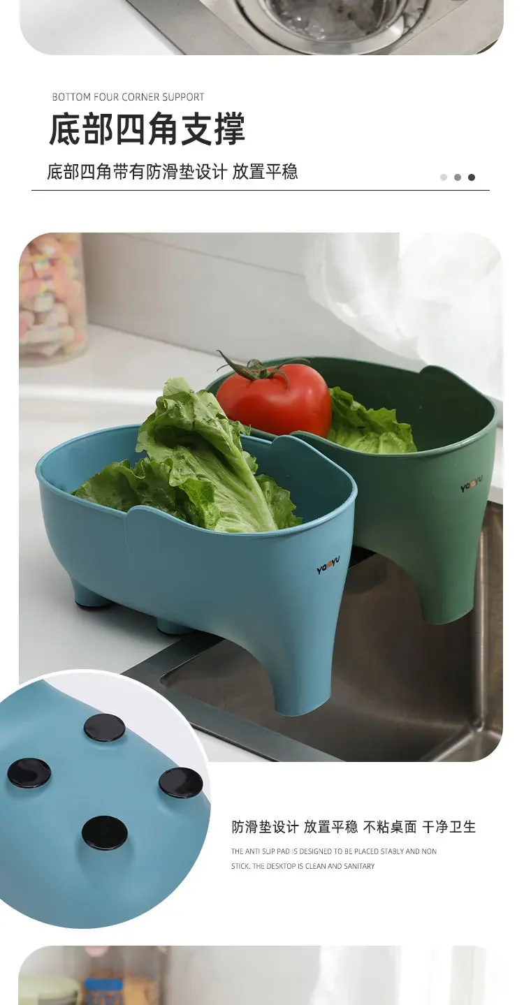 Elephant Drain Basket Kitchen Storage Drain Basket Multi-purpose Fruit and Vegetable Basket Household Plastic Kitchen Organizer