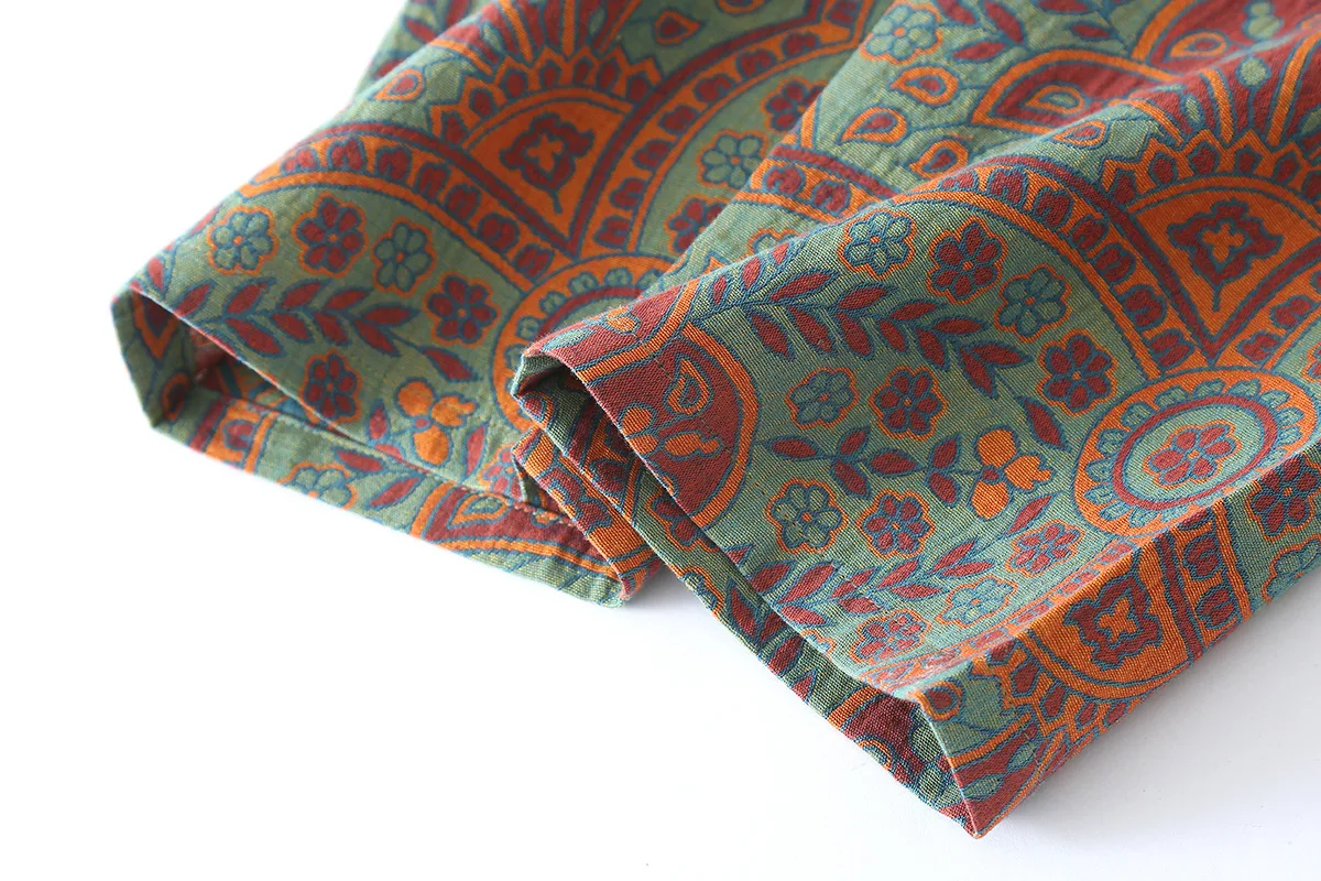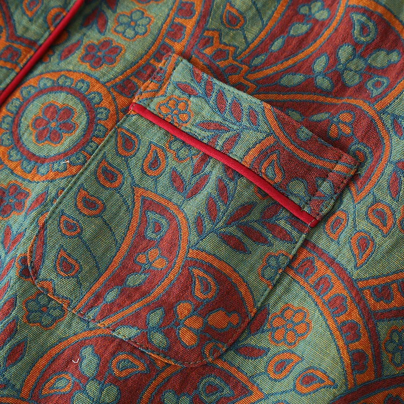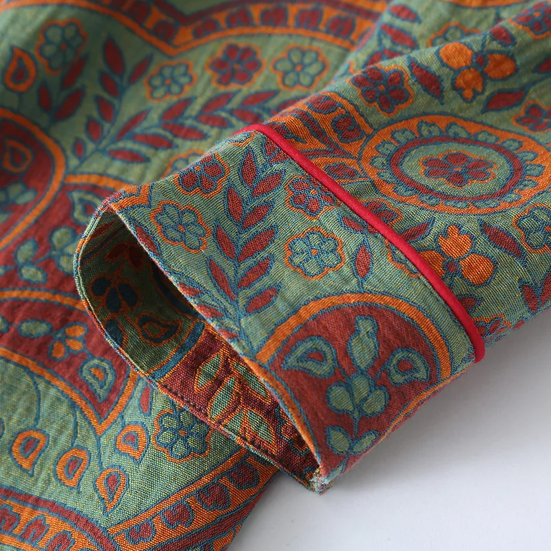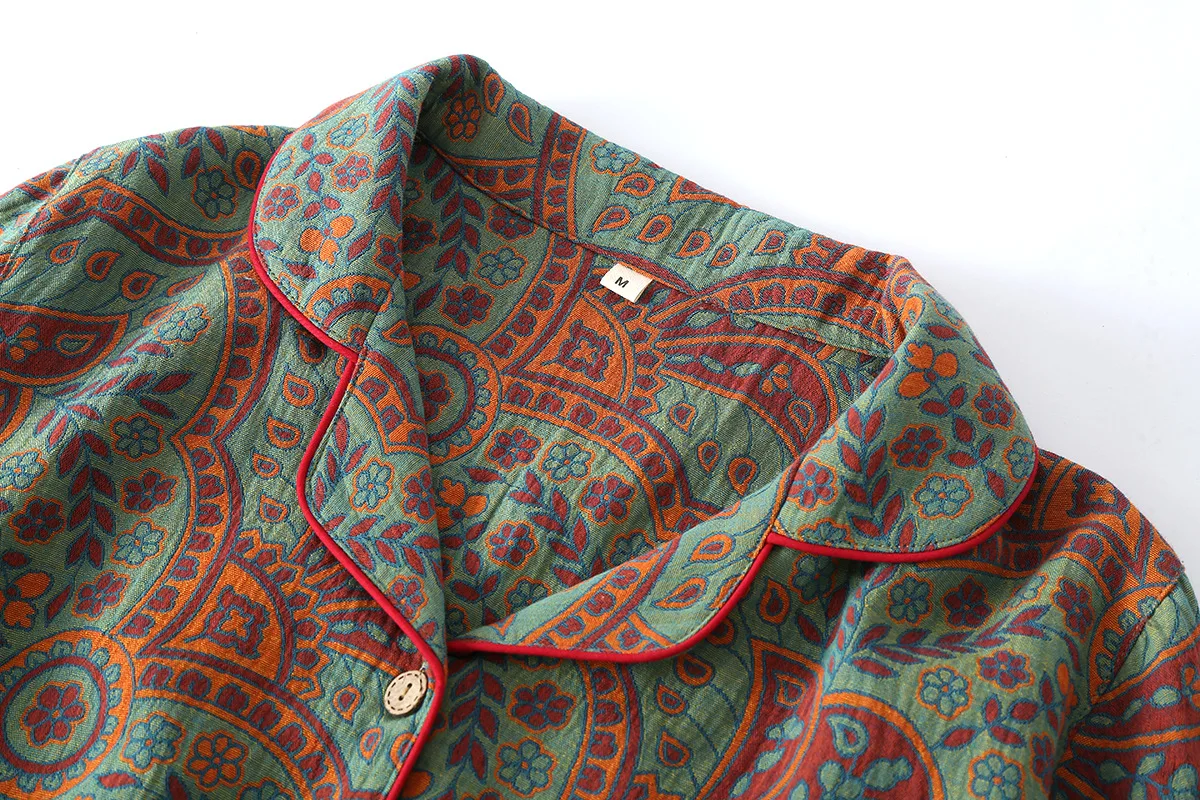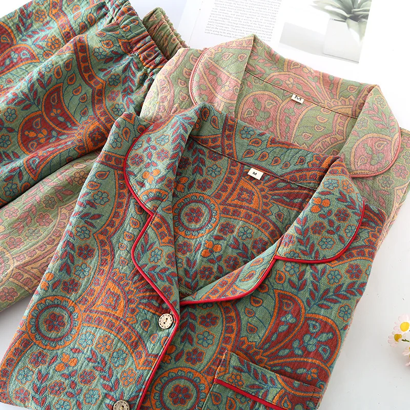 Ethnic Style Print Pajamas For Women 2 Pieces Outfit Loungewear Night Clothes Spring Autumn Long Sleeve Sleepwear Women's Cotton
