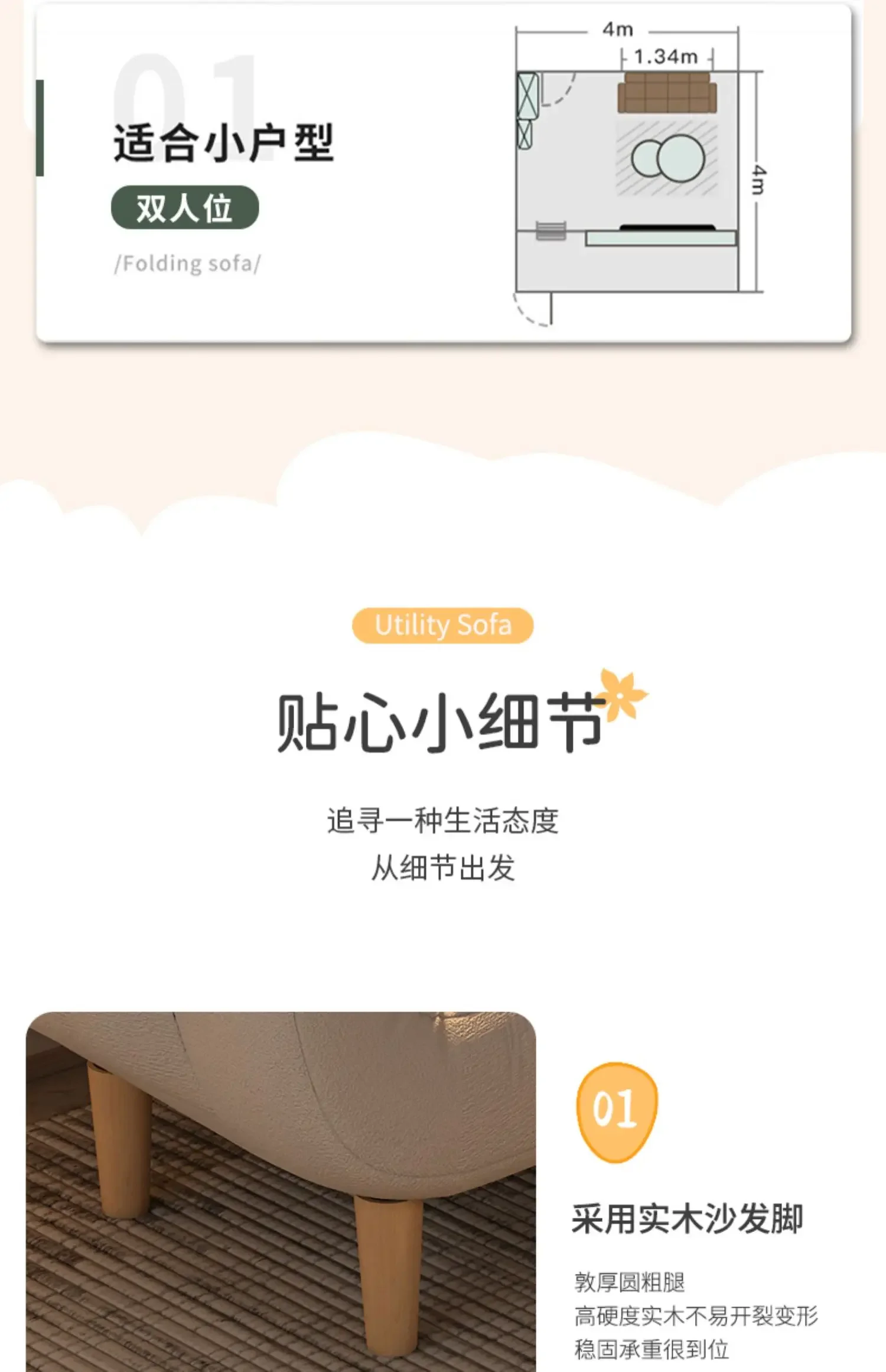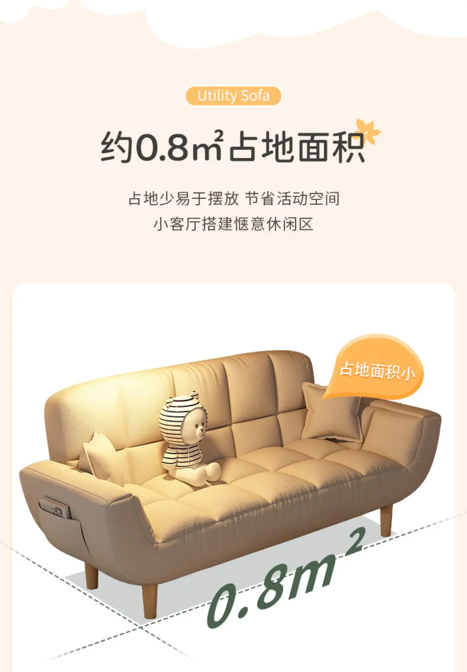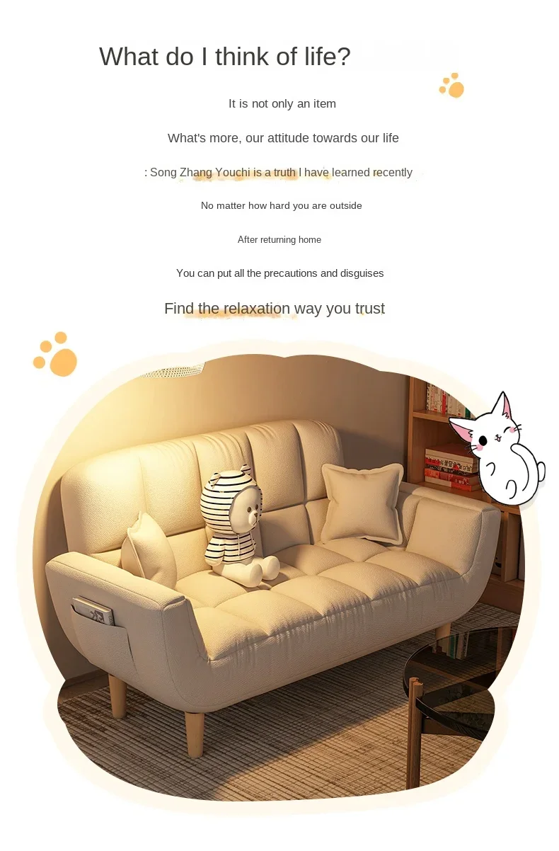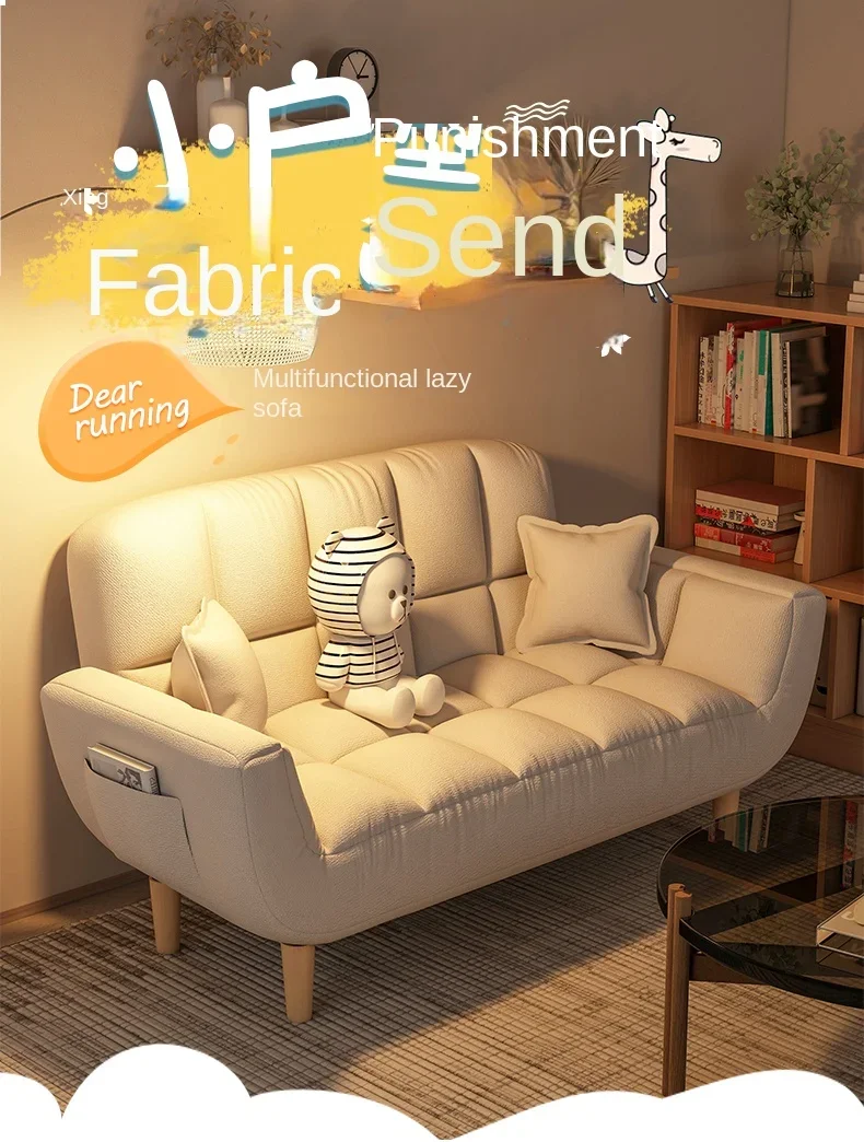 Fabric sofa living room, small layout, simple modern two person lazy sofa rental room, foldable single sofa bed