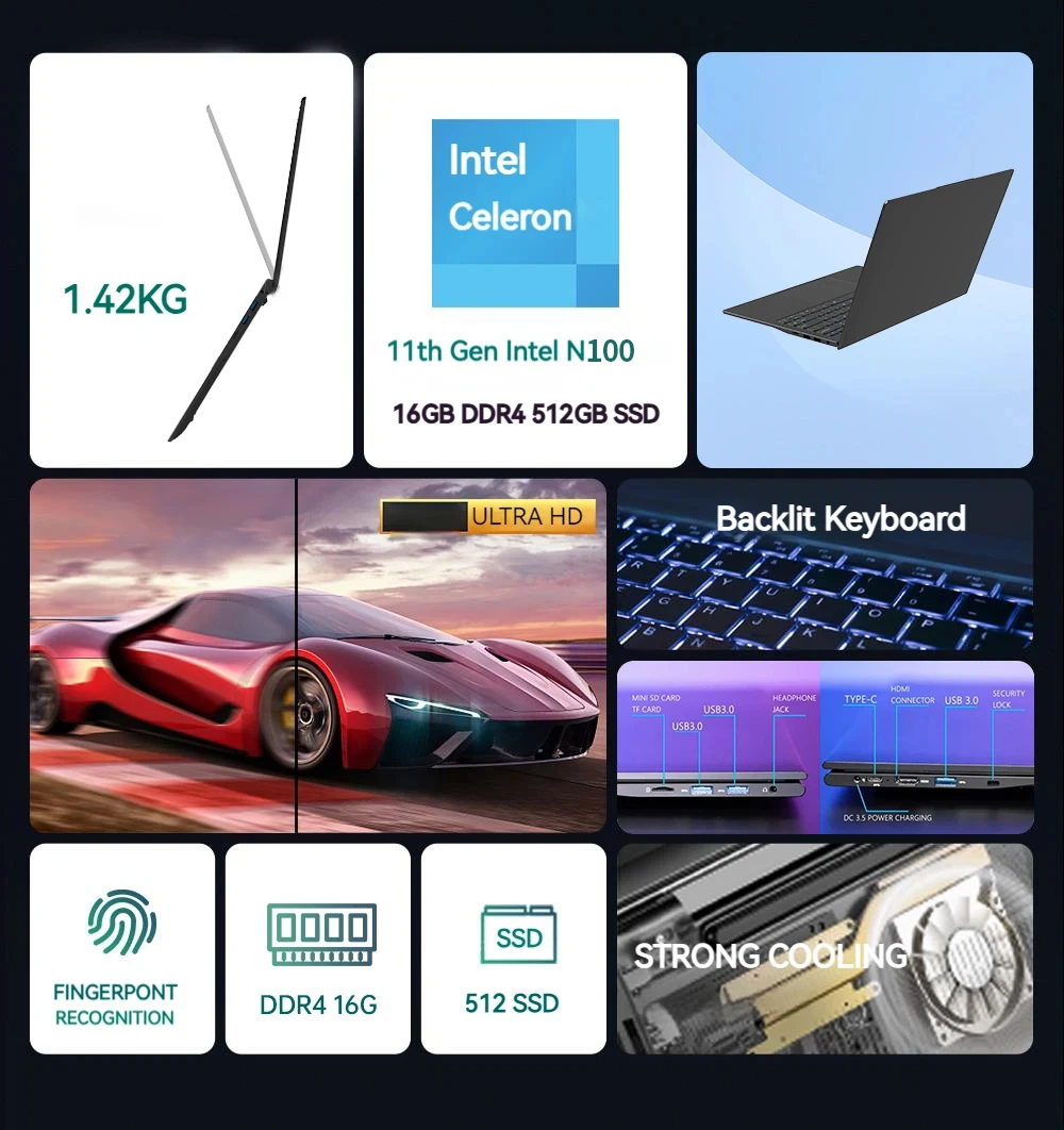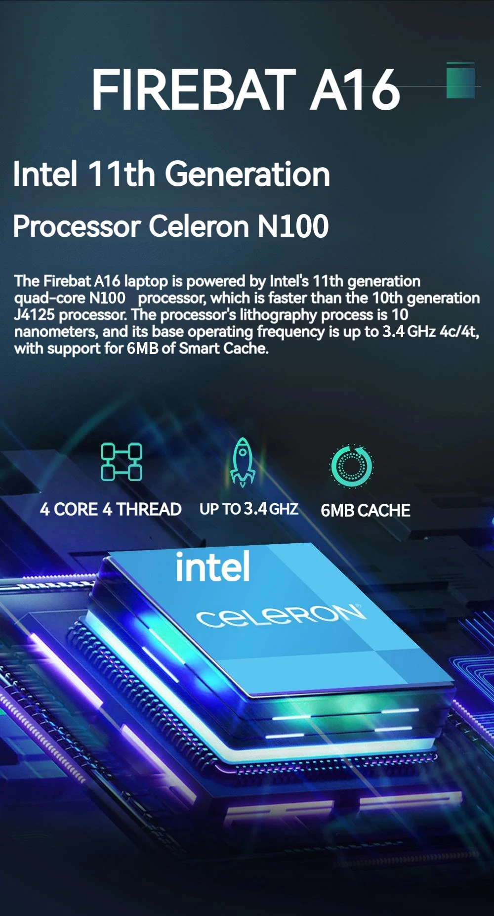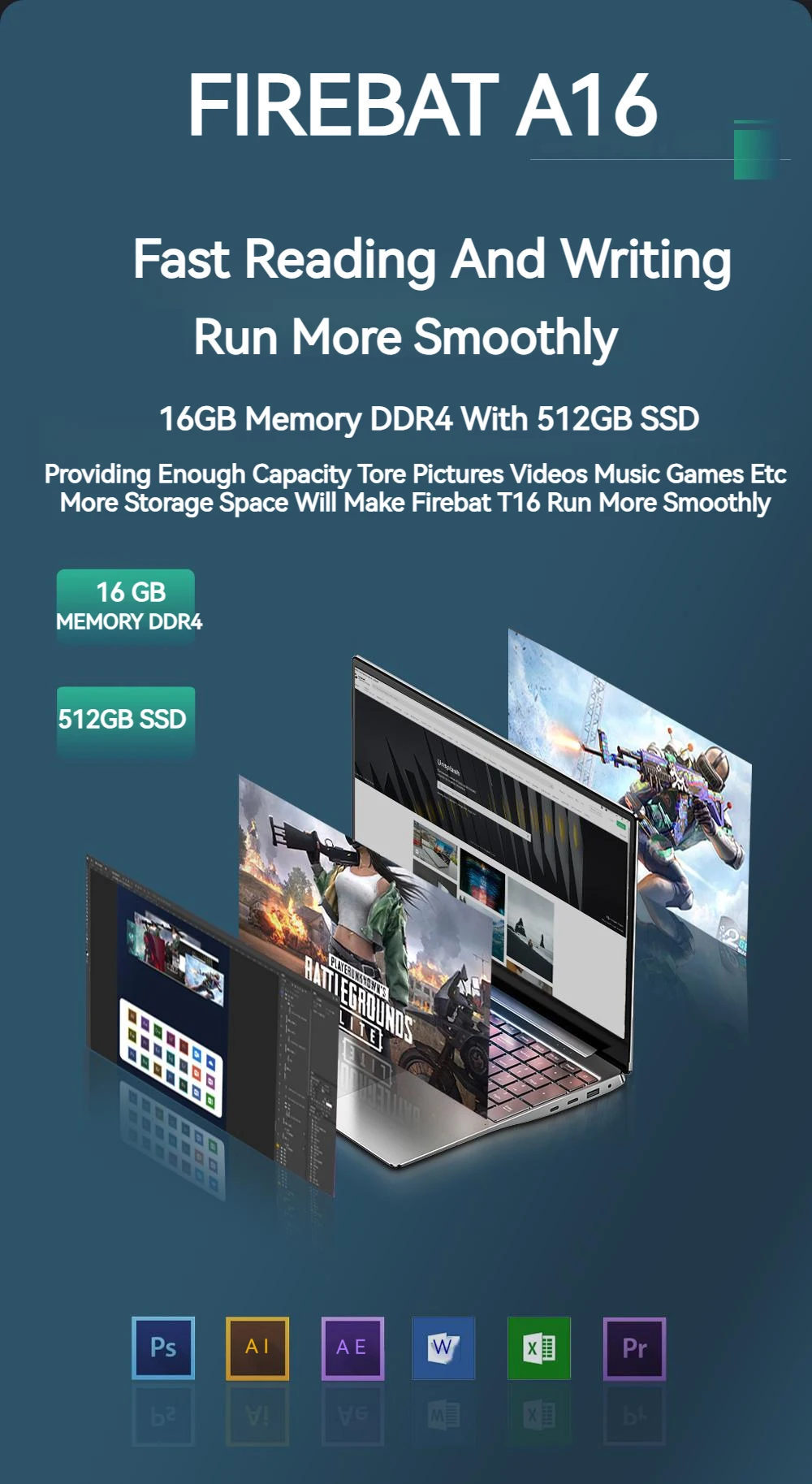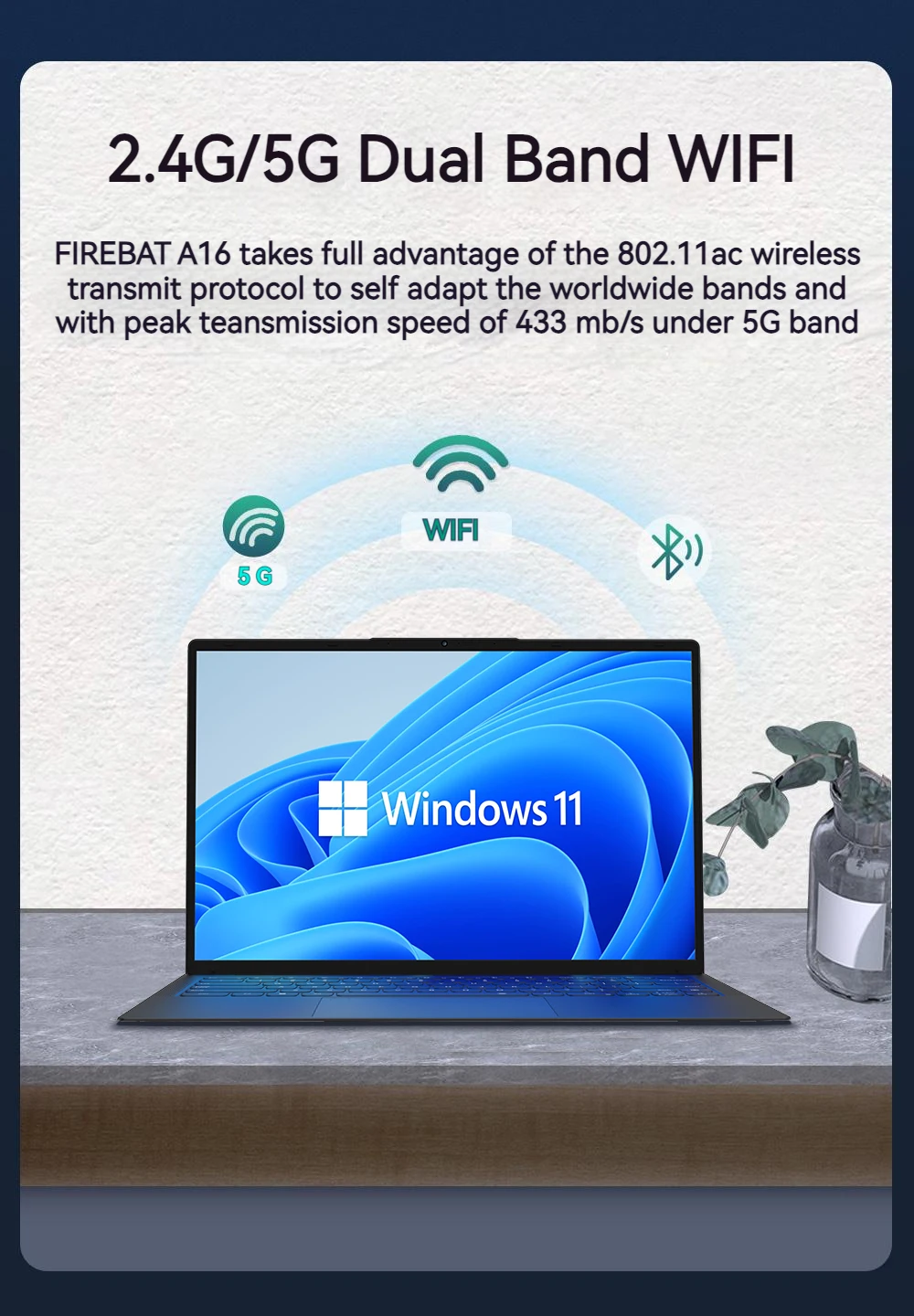FIREBAT A16 New Arrival 16 Inch 100%sRGB Ultra Slim DDR4 16G RAM 1TB 1920*1200 Fingerprint Portable Intel N100 Notebook Laptop