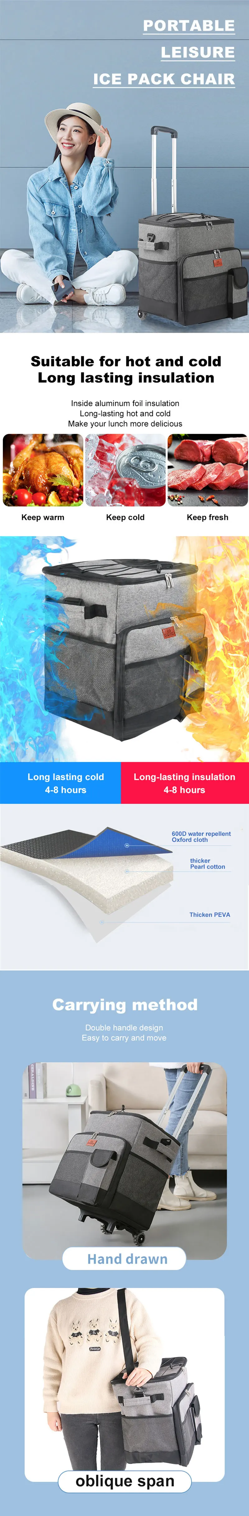 Folding Ice Box Cooler with Wheel Camping Storage Bag Insulated Thermal Coolers for Drinks Beer Can Large Fishing Beach Ice Bag