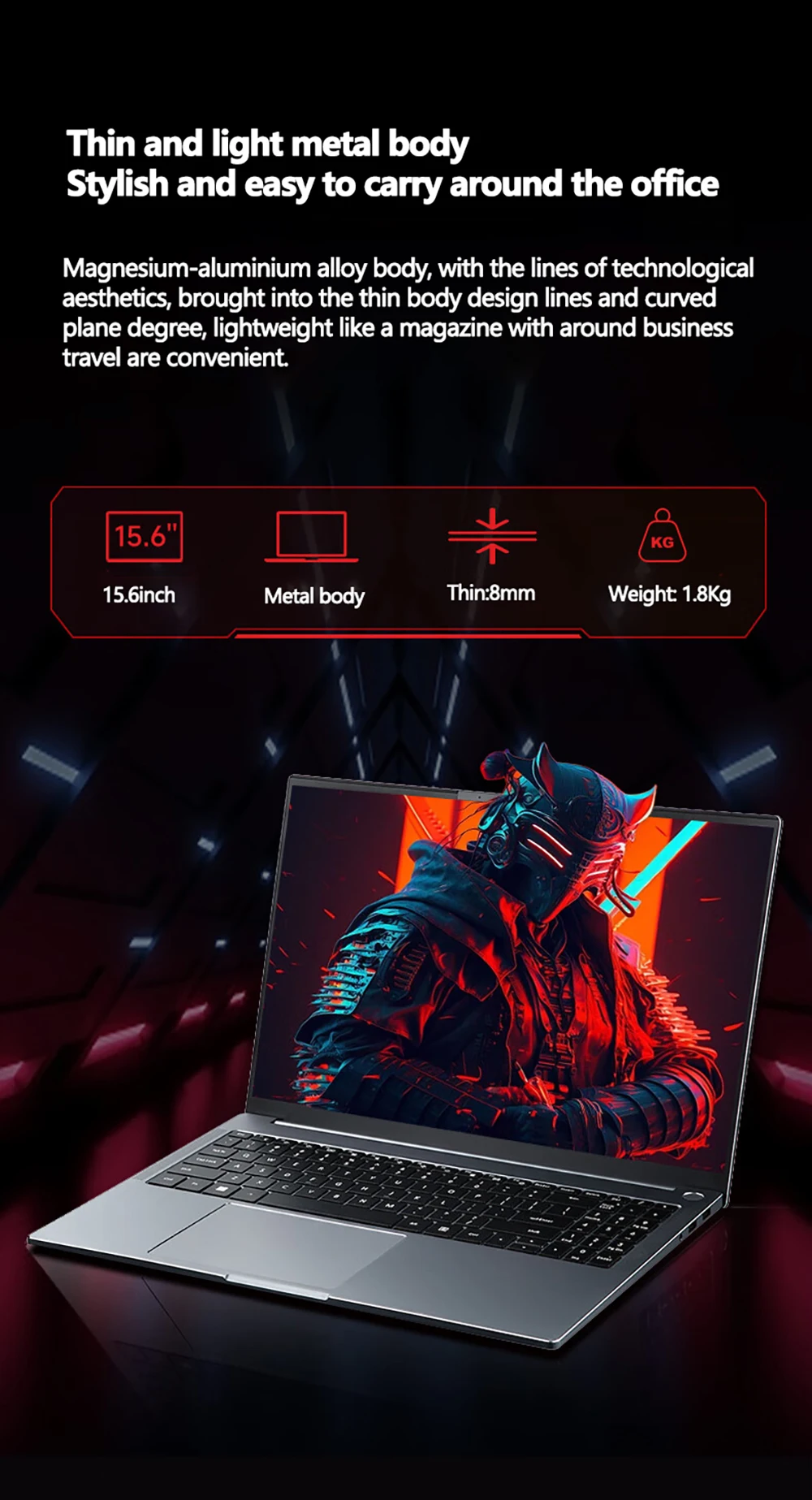 Magnesium-aluminium alloy body, with the lines of technological aesthetics, brought into the thin body design lines and curved plane degree, lightweight like a magazine with around business travel are convenient.