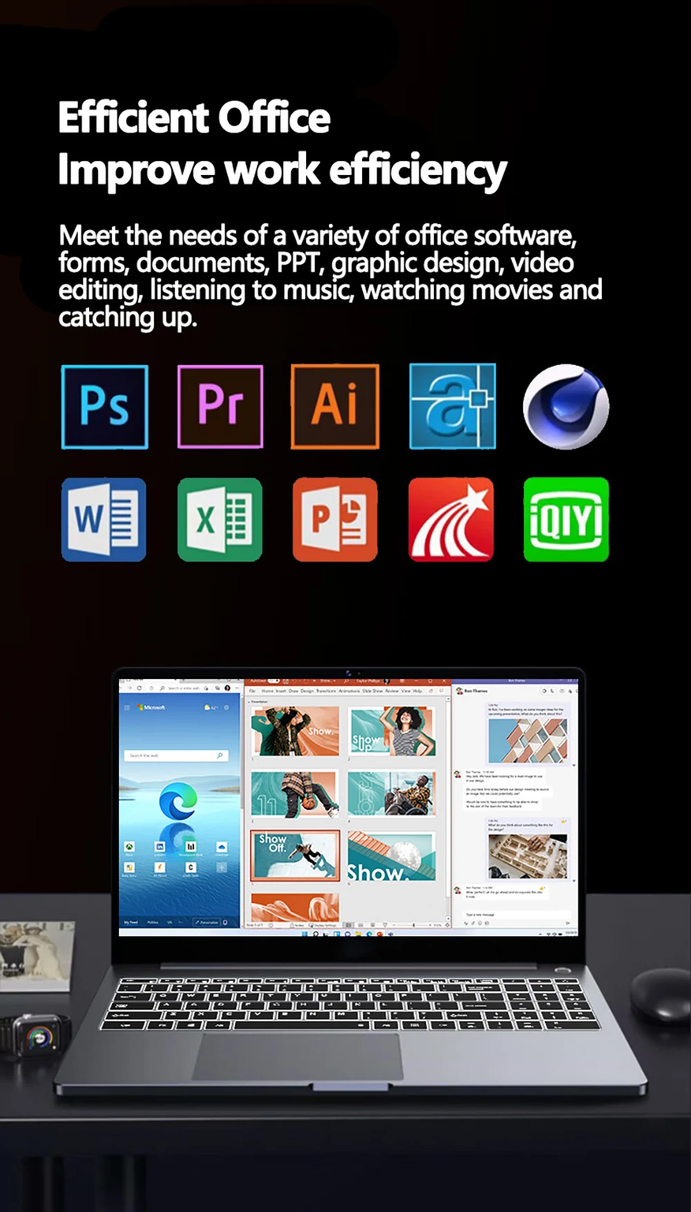 Meet the needs of a variety of office software,forms, documents, PPT, graphic design, video editing, listening to music, watching movies and catching up.