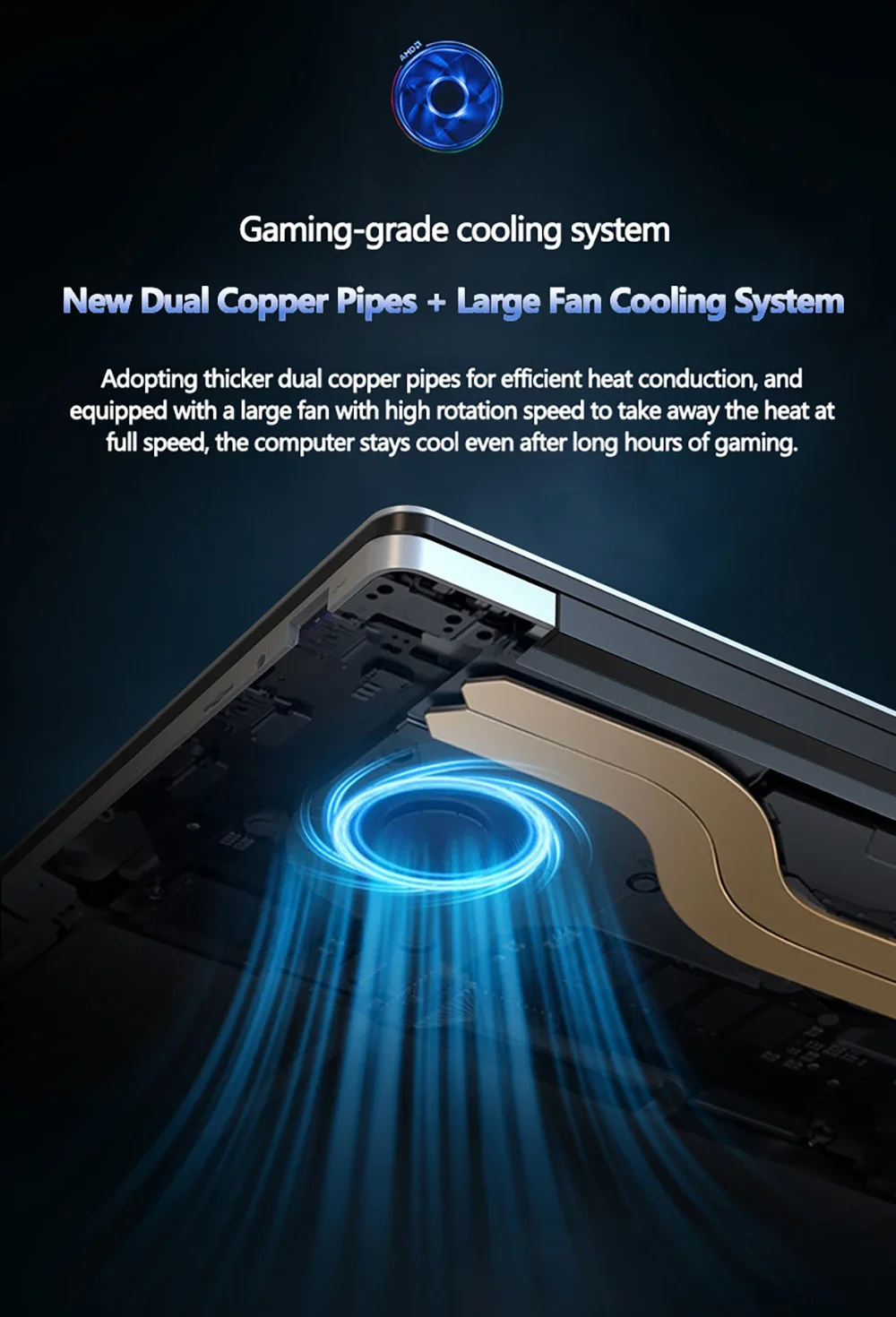 Adopting thickened double copper tubes for efficient heat conduction,And equipped with high-speed large fans to take away heat at full speed,Even if playing games for a long time, the computer can always stay cool.