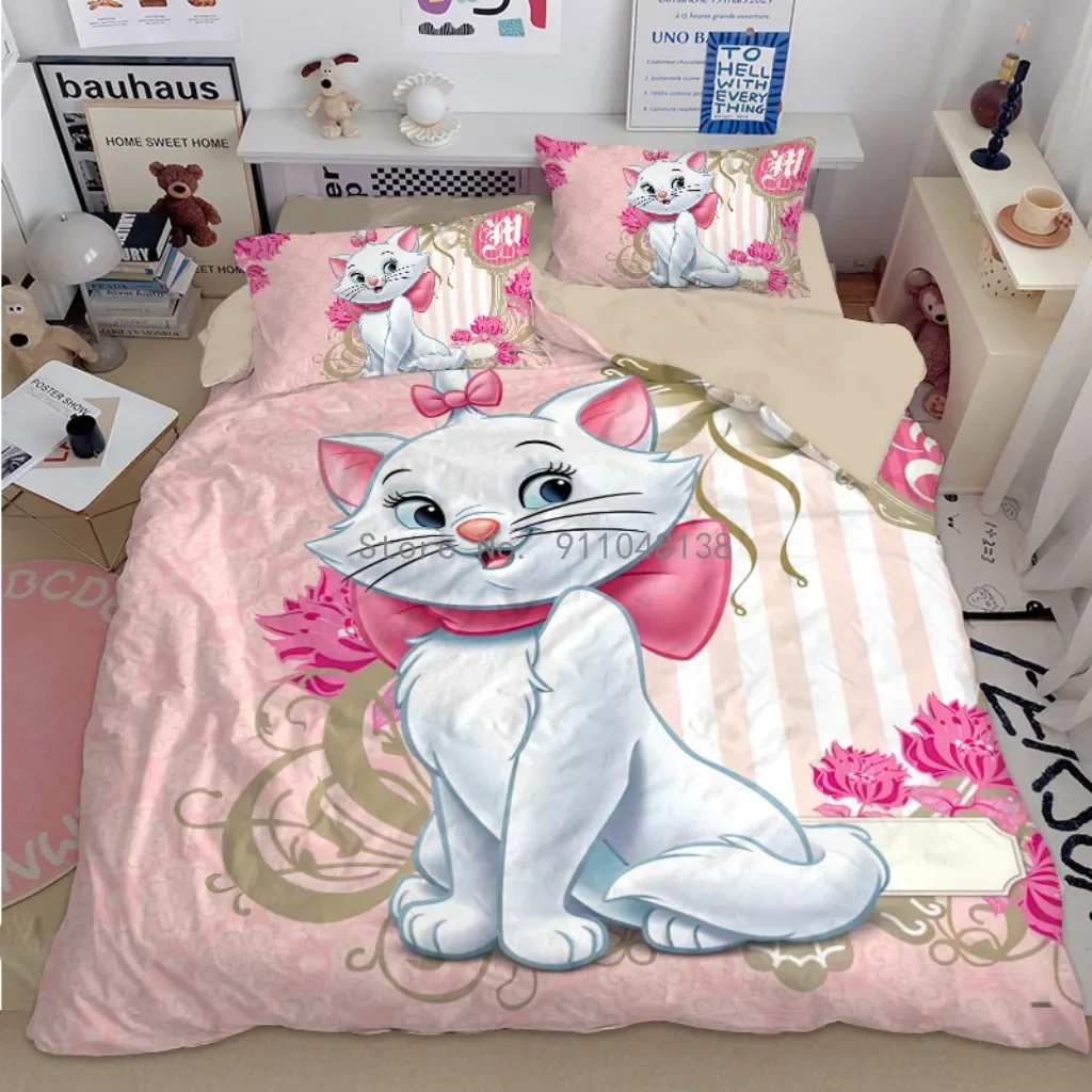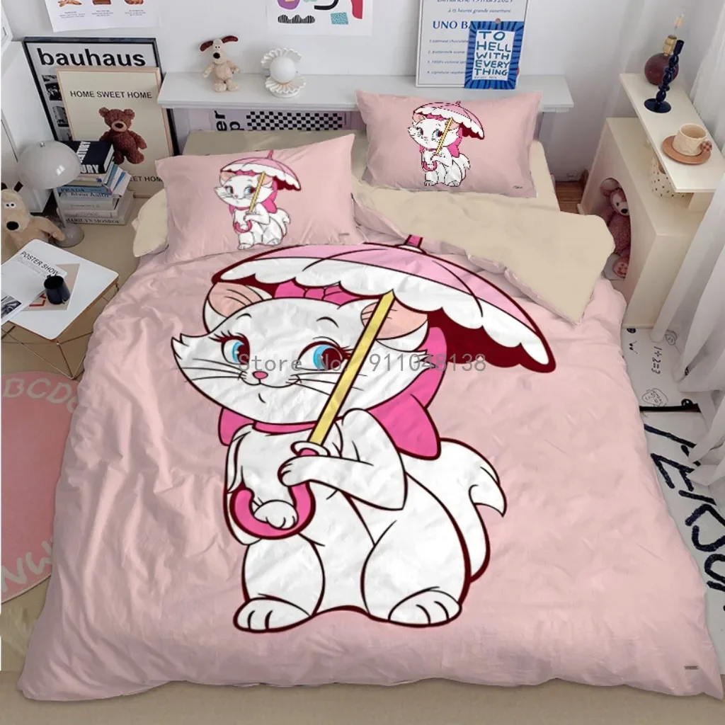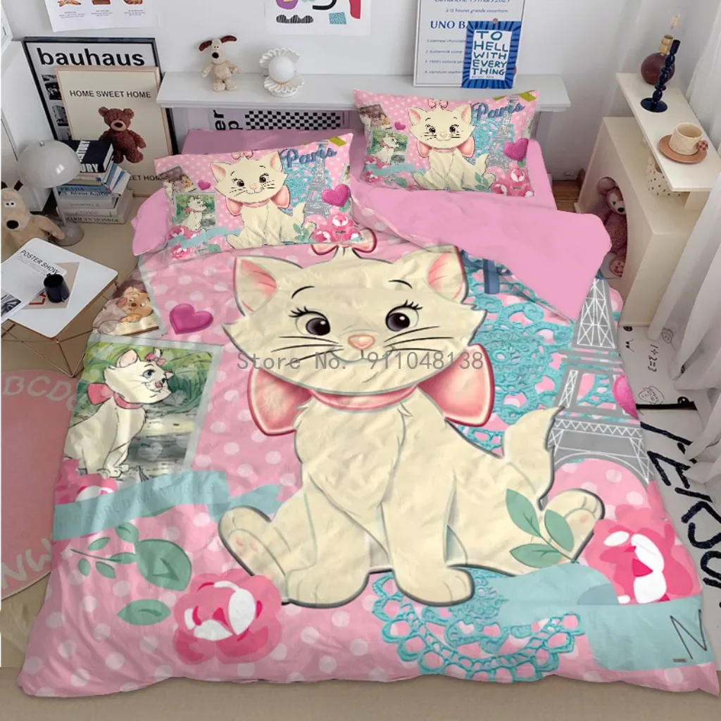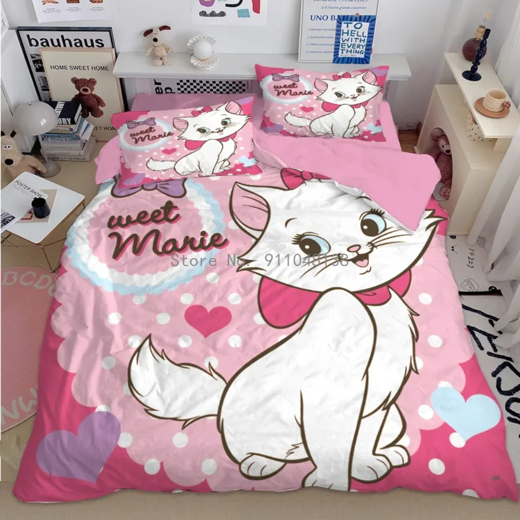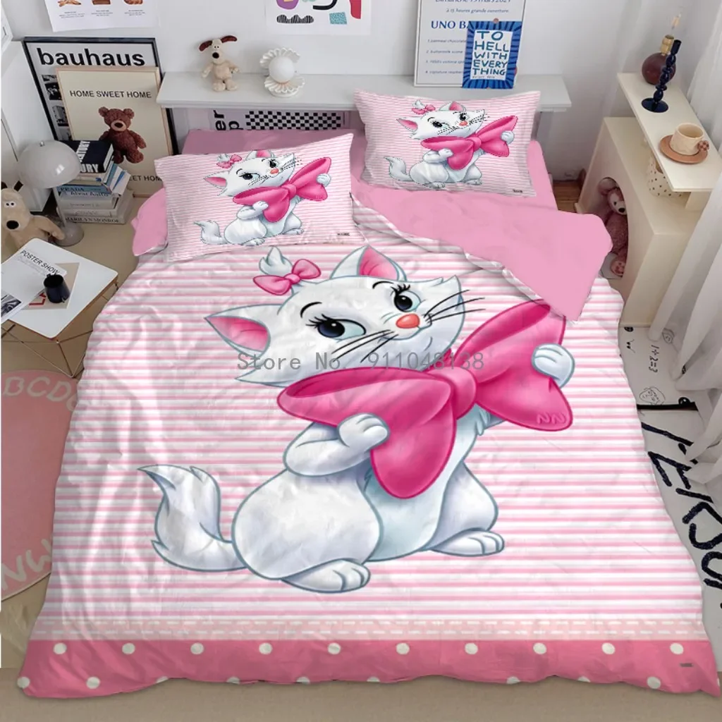 Hot Cute Pink Marie Cat Bedding Set Queen King Size Bed Set Children Girls Baby Duvet Cover Pillowcase Birthday Gift