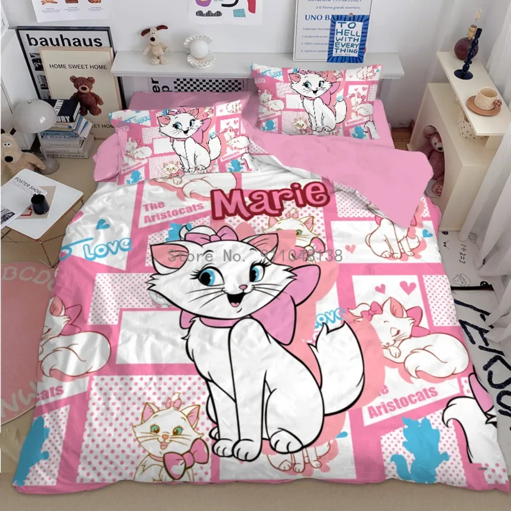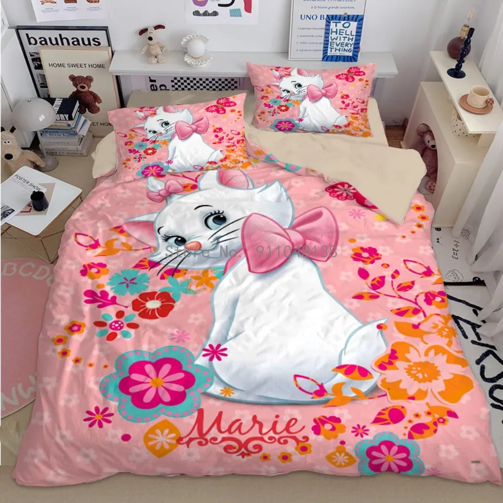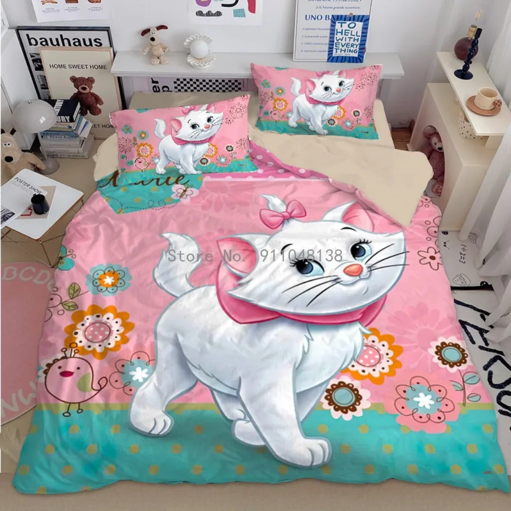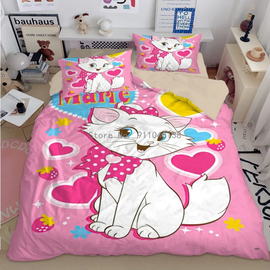 Hot Cute Pink Marie Cat Bedding Set Queen King Size Bed Set Children Girls Baby Duvet Cover Pillowcase Birthday Gift